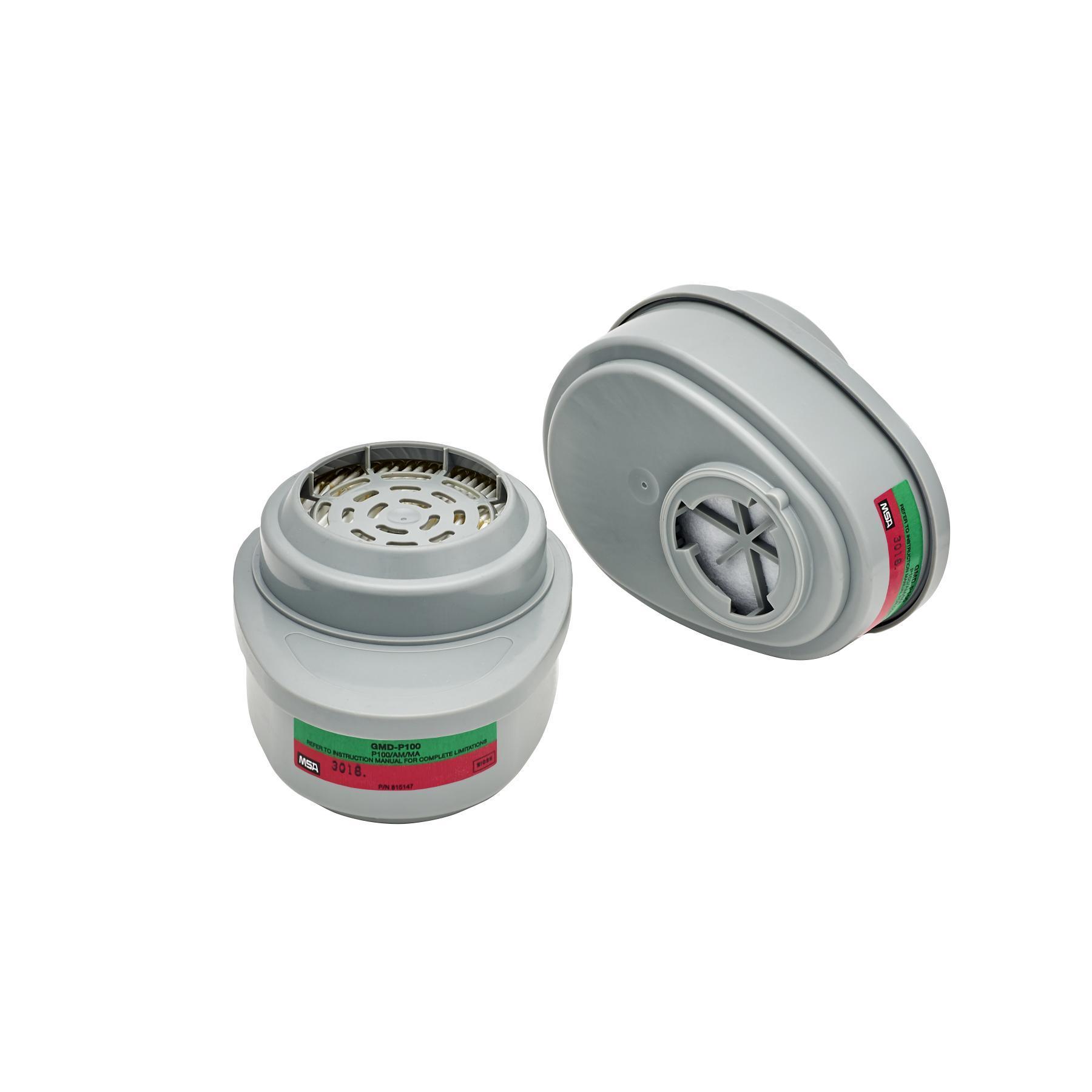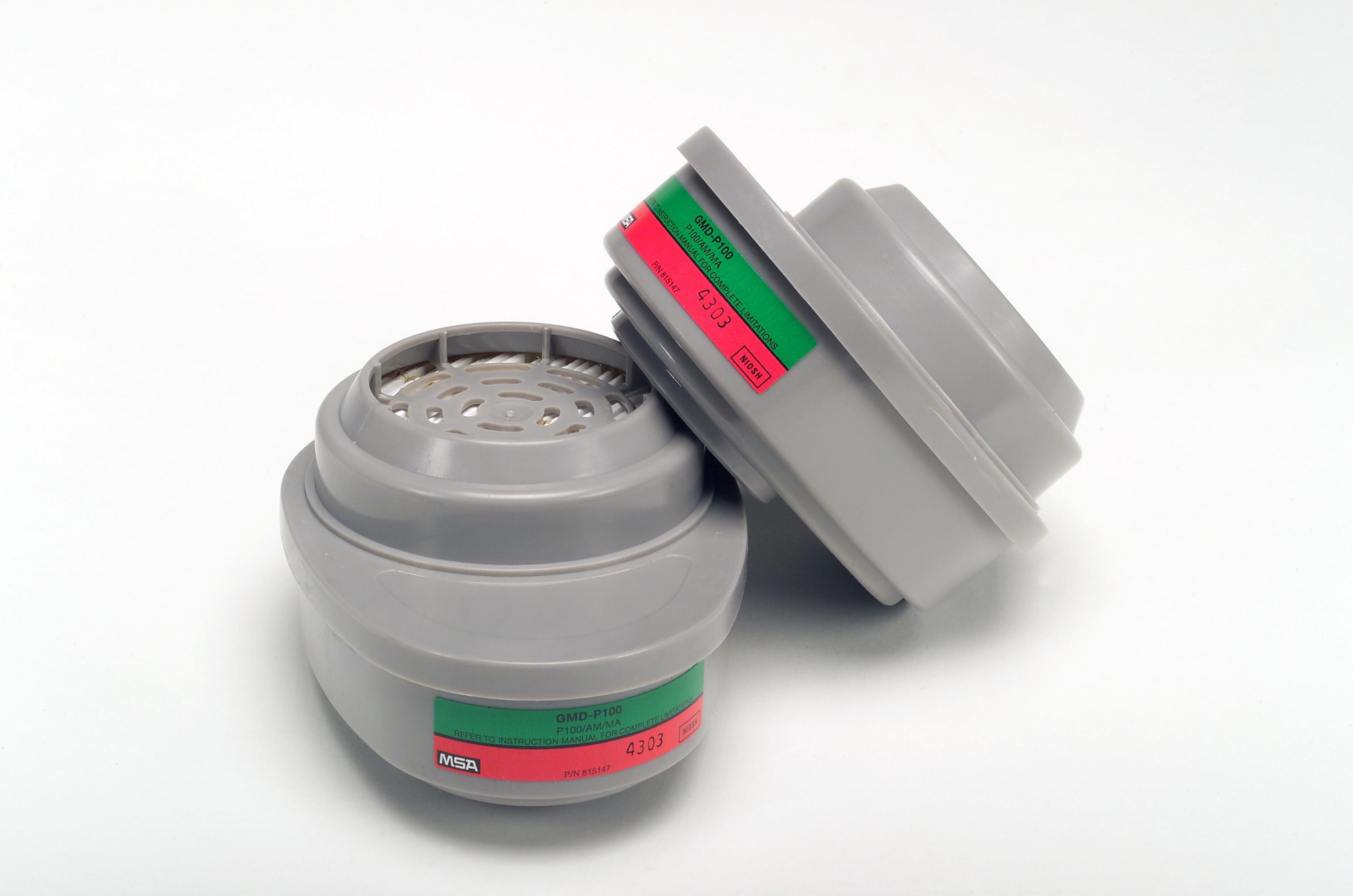 MSA 815365 Advantage Respirator Cartridge, For Use With Advantage Series Respirators, P100 Filter Class, 0.999 Filter Efficiency, Bayonet Connection, Resists: Ammonia and Methylamine