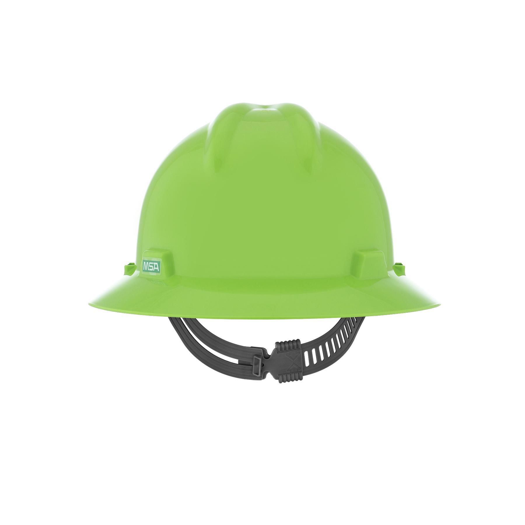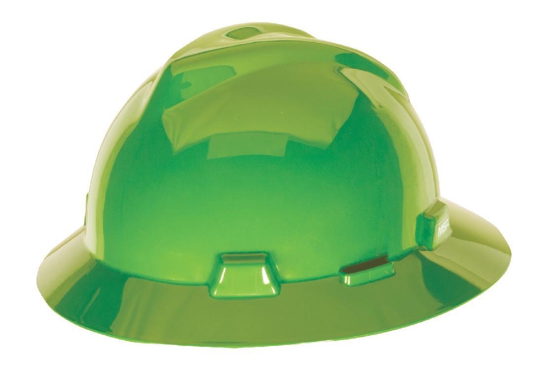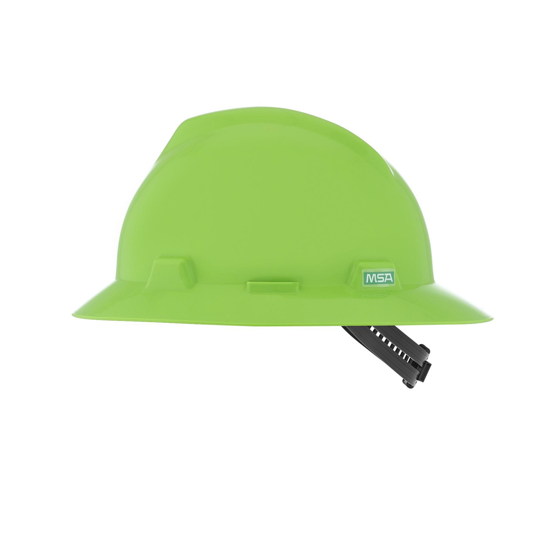 MSA V-Gard 815562 Full Brim Hard Hat, 6-1/2 Fits Mini Hat, 8 Fits Max Hat, Polyethylene, 4-Point Staz-On Suspension, ANSI Electrical Class Rating: Class E, ANSI Impact Rating: Type I, Pin Lock Adjustment