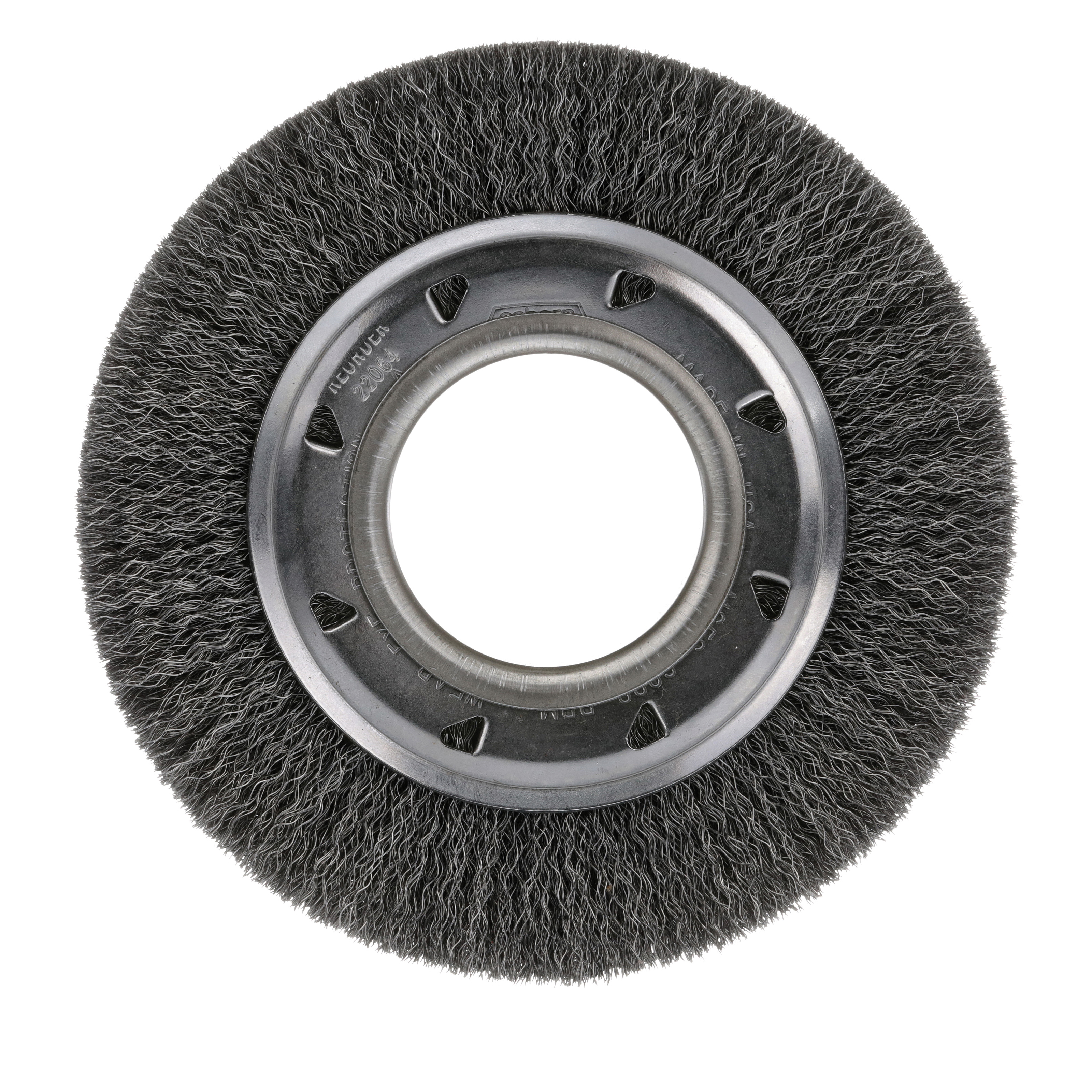 - Arbor Hole Size:2 inAttachment Type:Unthreaded ArborBrush Diameter:8 inFace Width:5/8 inFilament/Wire Diameter:0.006 inFilament/Wire Type:CrimpedFill Material:Carbon SteelMaximum Speed:4500 rpmTrim Length:1-1/2 inType:Medium Face