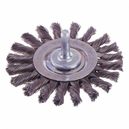- Attachment Type:ArborBrush Diameter:3 inFilament/Wire Diameter:0.014 inFilament/Wire Type:Standard/Twist KnotFill Material:Carbon SteelMaximum Speed:25000 rpmShank Diameter:1/4 inTrim Length:5/8 in