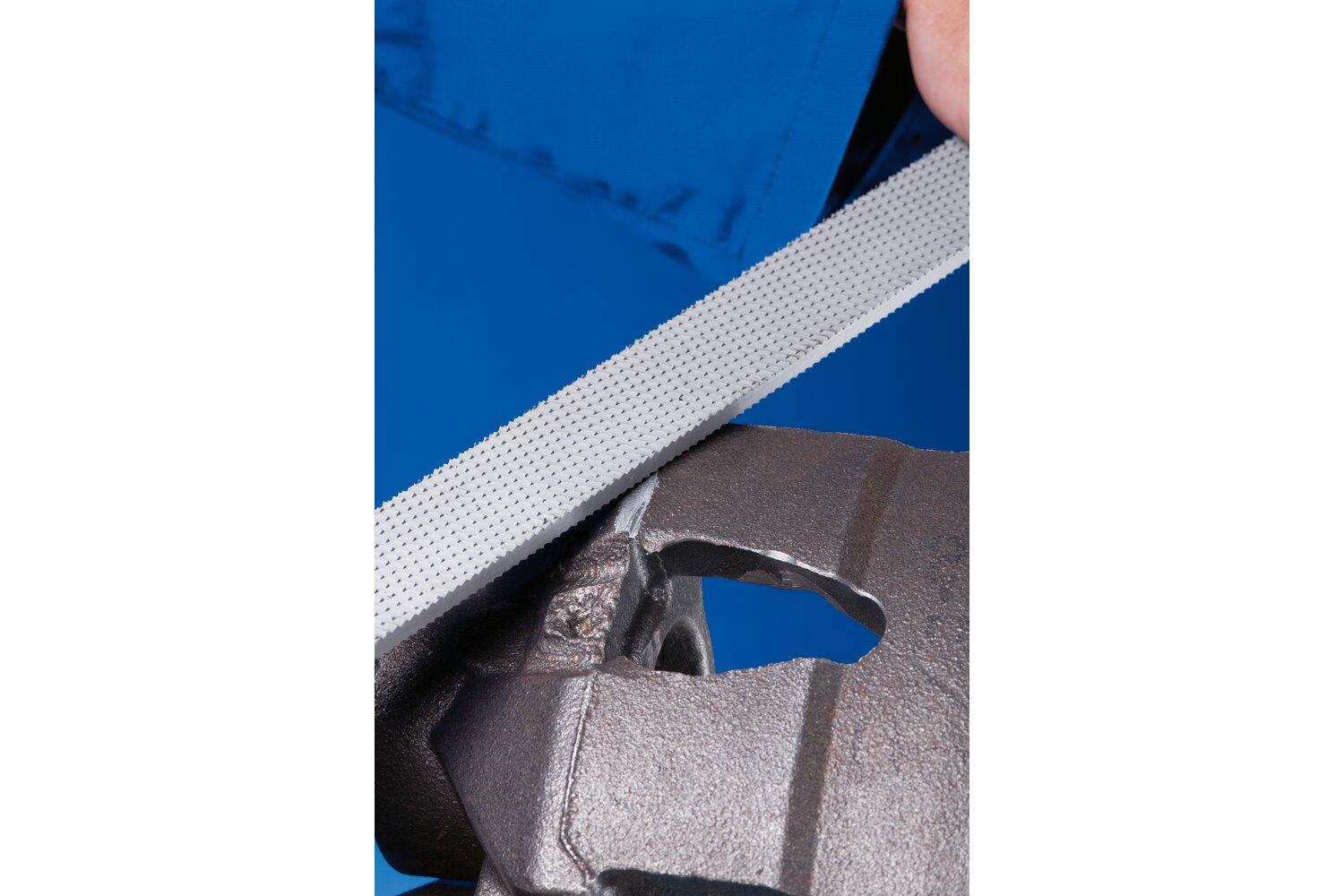- The highly abrasive milled tooth geometry with large flutes prevents loading