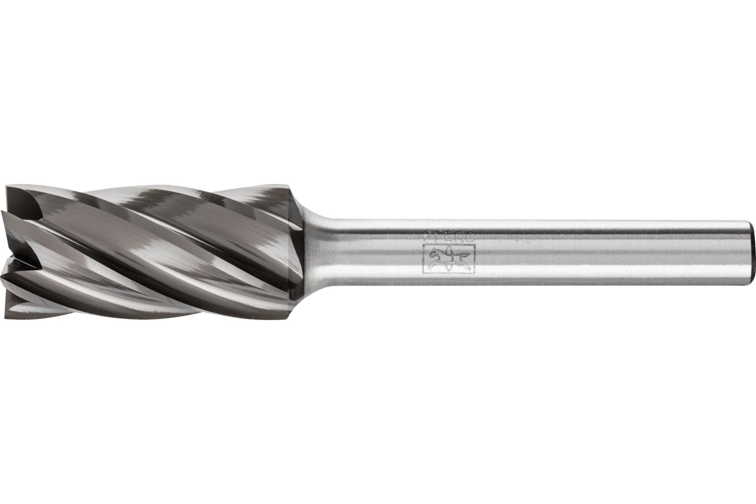 PFERD Carbide Burr, Premium Grade, Series: High Performance Line, 1/2 in Diameter Head, 1 in Length of Cut, 2-3/4 in Overall Length, End Cut End, Cylindrical Head Shape, Aluminum Cut, 1/4 in Shank Diameter, 1-3/4 in Shank Length, Tungsten Carbide Head, HC-NFE Black-Gray Head Coating, 30000 rpm Maximum, Applicable Materials: Aluminum, Non-Ferrous Metals and Plastics, Industry Specification: SB-5