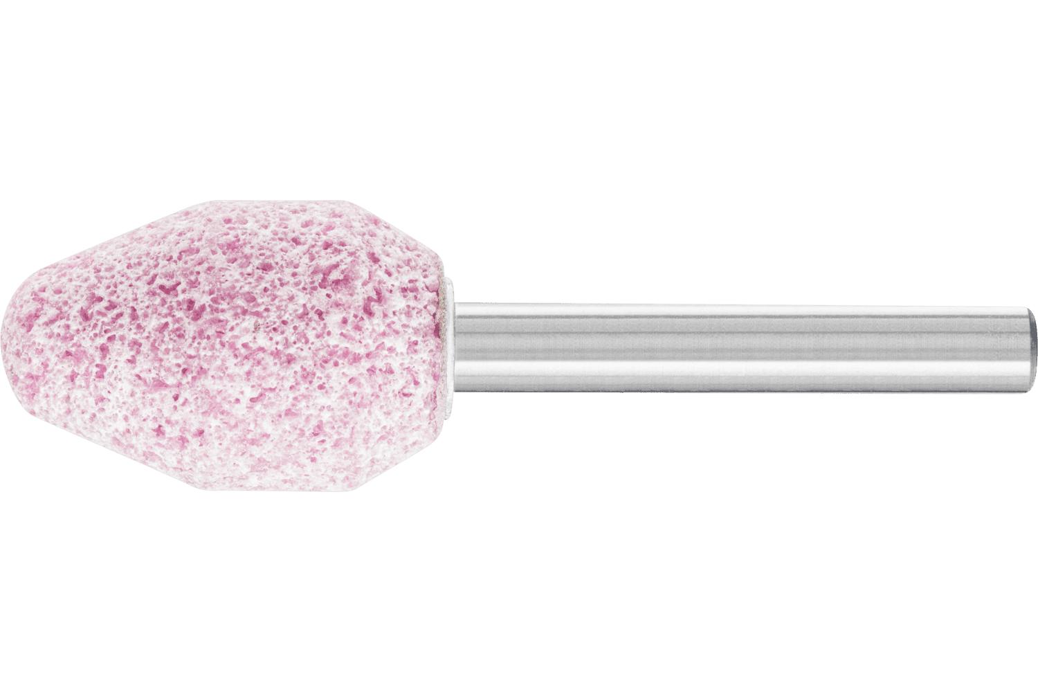 PFERD Mounted Point, Series: A Series, A6 Point Shape Code, 3/4 in Head Dia, 1-1/8 in Head Length, 1/4 in Shank Dia, 1-1/2 in Shank Length, O Density/Hardness, 30 Grit, Extra Coarse Grade, Aluminum Oxide Abrasive, 39000 rpm Maximum, Vitrified Porous Bond, Steel Abrading Application