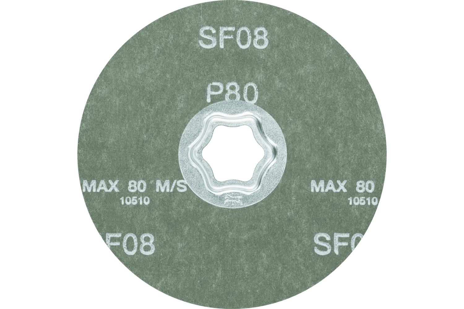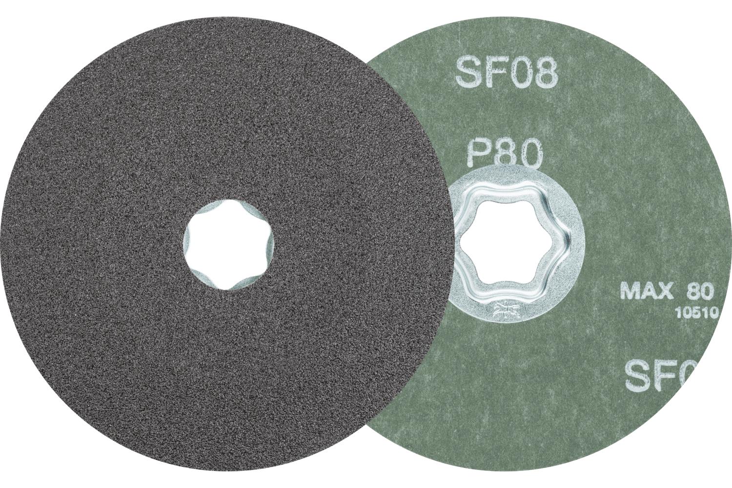 PFERD COMBICLICK® Coated Abrasive Disc, 4-1/2 in Diameter Disc, 80 Grit, Silicon Carbide Abrasive, Fiber Backing, Applicable Materials: Aluminum, Copper, Bronze, Titanium, High Alloyed Steel, Fiber Reinforced Plastic and Titanium Alloy, 13300 rpm Maximum