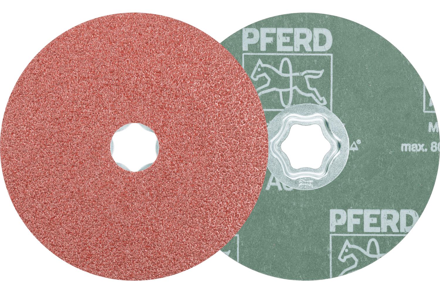 PFERD COMBICLICK® Coated Abrasive Disc, 5 in Diameter Disc, 36 Grit, Aluminum Oxide Abrasive, Fiber Backing, Applicable Materials: Steel, Non-Ferrous Metals, Cast Iron and Plastic, 12200 rpm Maximum