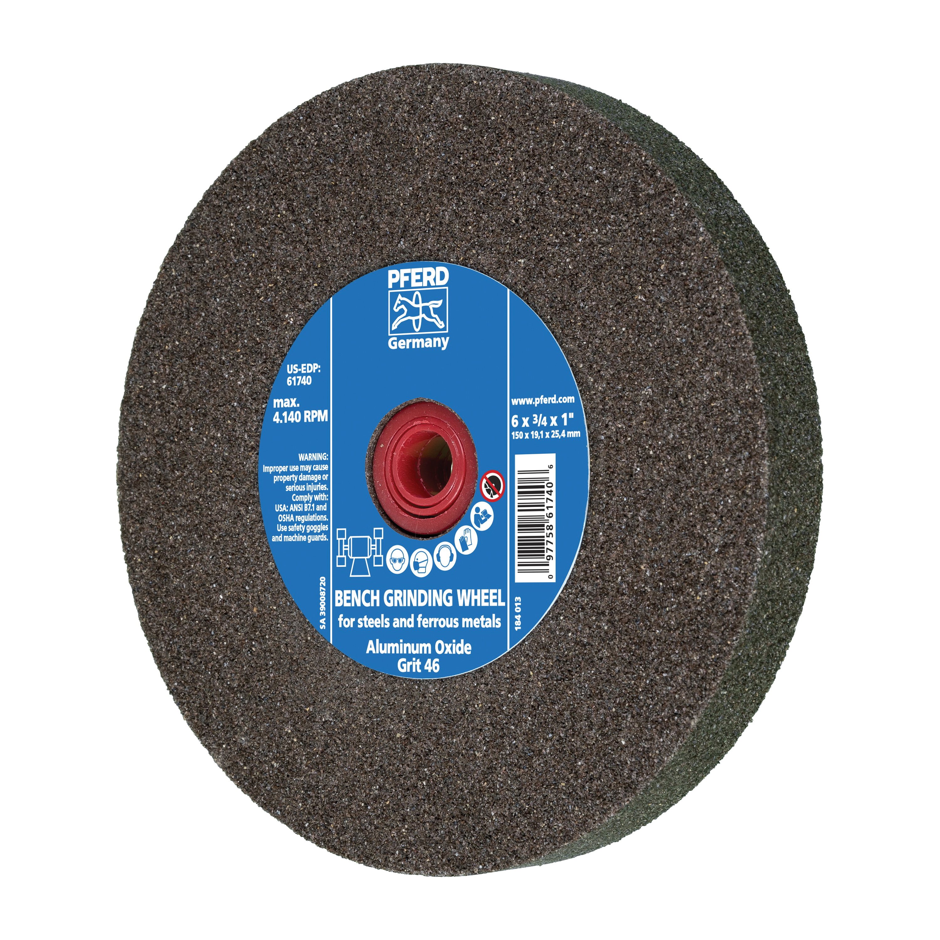 - Abrasive Material:Aluminum OxideApplicable Materials:Steel and All Ferrous MetalsBond Type:VitrifiedCenter Hole Size:1 inGrade:MediumGrit:46Maximum Speed:4140 rpmSeries:Universal Line PS-FORTEType:FlatWheel Diameter:6 inWheel Thickness:3/4 inWheel Type Number:Type 1