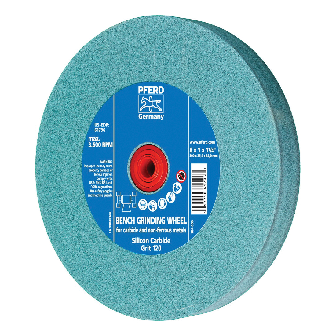 - Abrasive Material:Silicon CarbideApplicable Materials:Carbide, Non-Ferrous Metals and MasonryBond Type:VitrifiedCenter Hole Size:1-1/4 inGrade:FineGrit:120Maximum Speed:3600 rpmSeries:Universal Line PS-FORTEType:FlatWheel Color:GreenWheel Diameter:8 inWheel Thickness:1 inWheel Type Number:Type 1