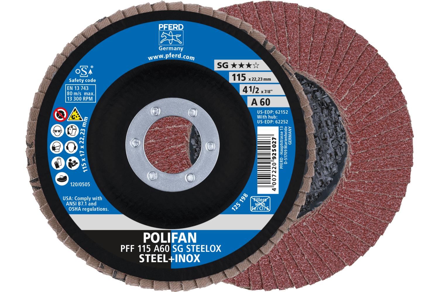 - In Stock:YesAbrasive Material:Aluminum OxideBacking Material:ClothCenter Hole Size:7/8 inDisc Diameter:4-1/2 inDisc Type:Type 27 FlatGrit:60Maximum Speed:13300 rpmSeries:Performance Line SG AType:Unthreaded