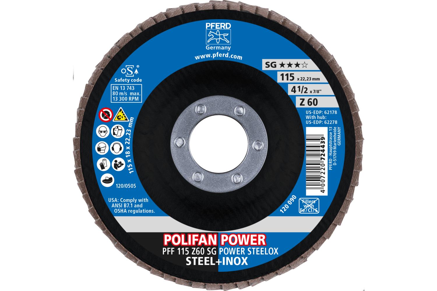 - In Stock:YesAbrasive Material:Zirconia AluminaBacking Material:ClothCenter Hole Size:7/8 inDisc Diameter:4-1/2 inDisc Type:Type 27 FlatGrit:60Maximum Speed:13300 rpmSeries:Performance Line SG ZType:Unthreaded