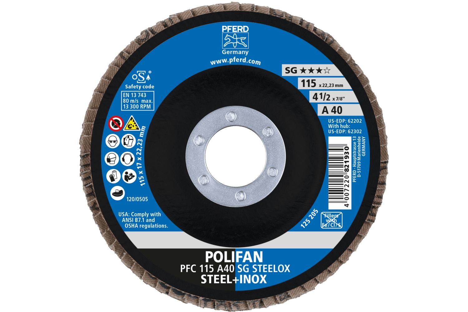 - Abrasive Material:Aluminum OxideBacking Material:ClothCenter Hole Size:7/8 inDisc Diameter:4-1/2 inDisc Type:Type 29 ConicalGrit:40Maximum Speed:13300 rpmSeries:Performance Line SG AType:Unthreaded