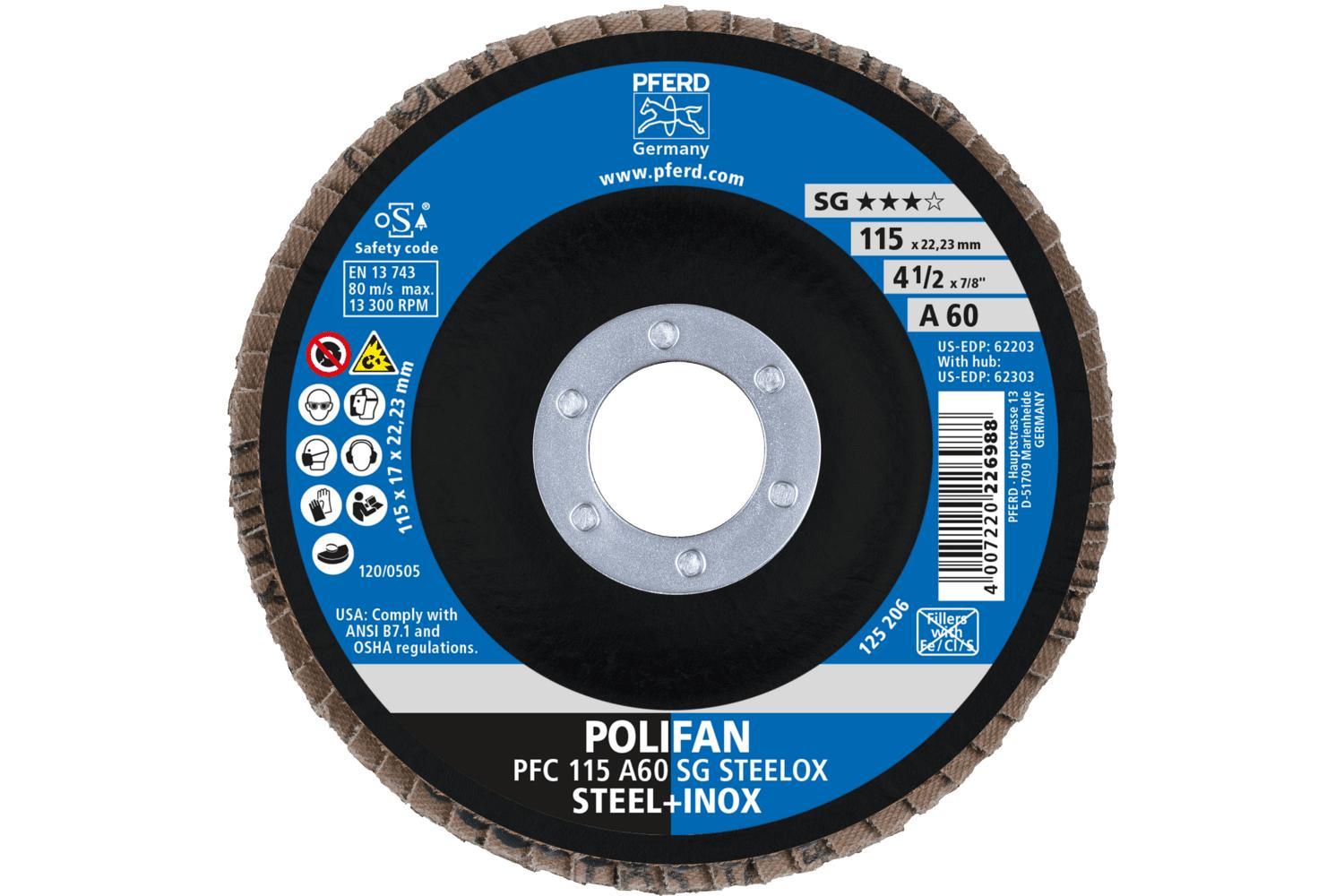 - Abrasive Material:Aluminum OxideBacking Material:ClothCenter Hole Size:7/8 inDisc Diameter:4-1/2 inDisc Type:Type 29 ConicalGrit:60Maximum Speed:13300 rpmSeries:Performance Line SG AType:Unthreaded