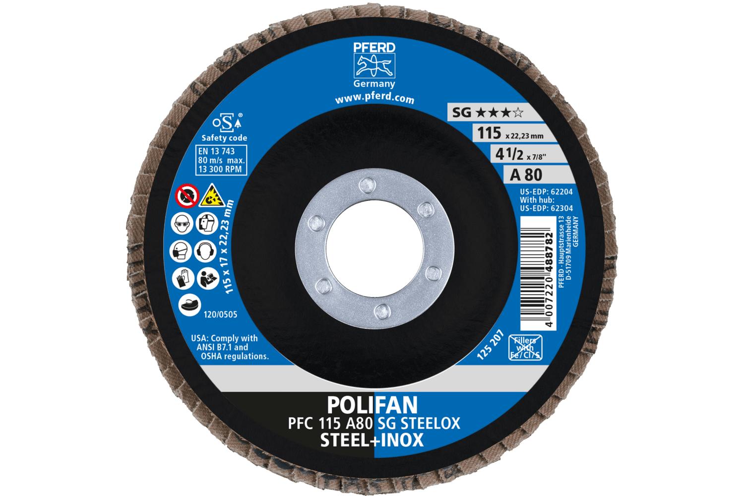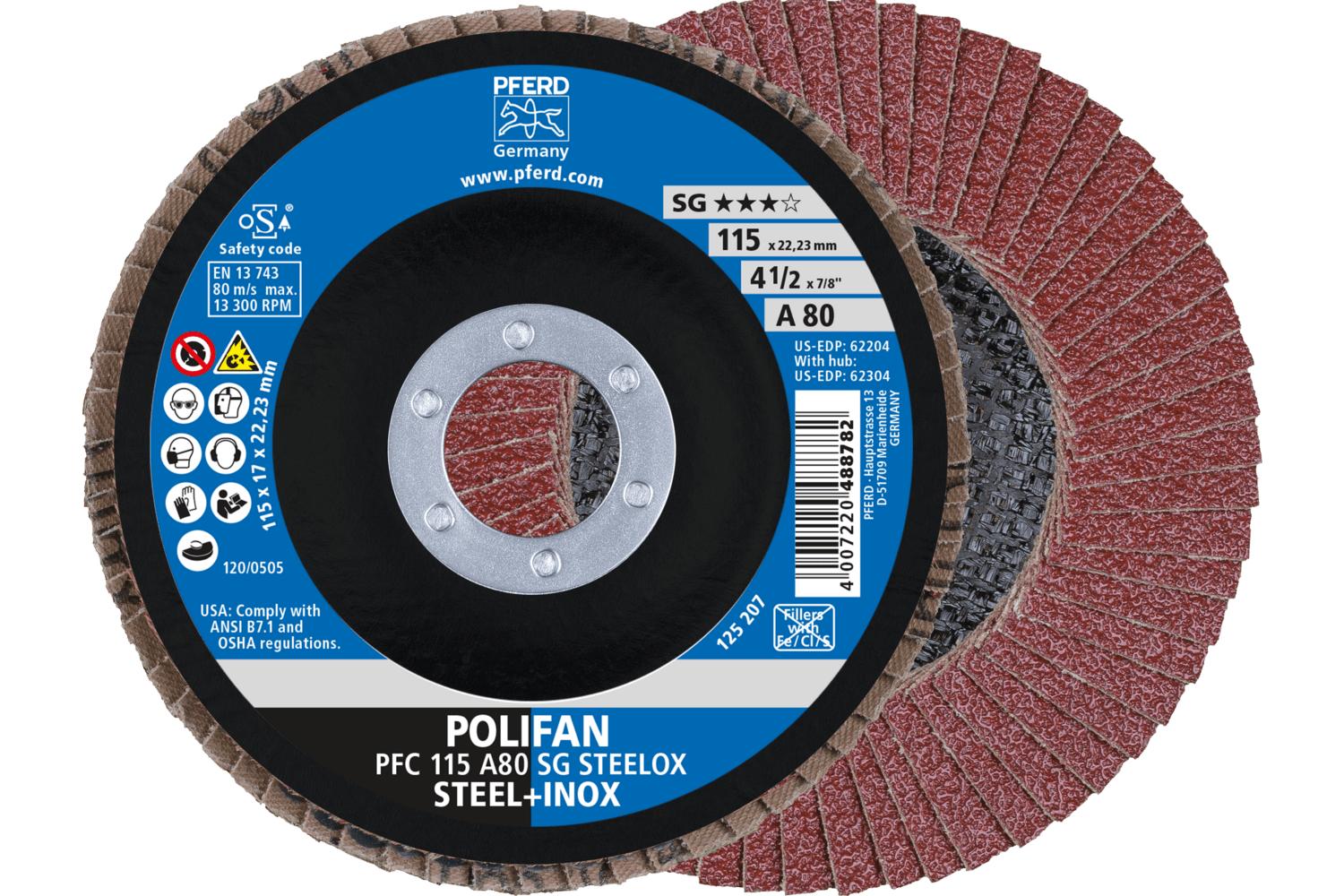 - Abrasive Material:Aluminum OxideBacking Material:ClothCenter Hole Size:7/8 inDisc Diameter:4-1/2 inDisc Type:Type 29 ConicalGrit:80Maximum Speed:13300 rpmSeries:Performance Line SG AType:Unthreaded