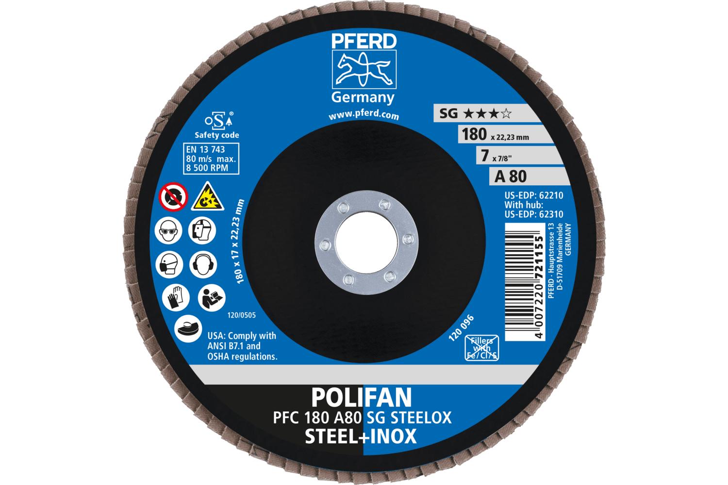 - Abrasive Material:Aluminum OxideBacking Material:ClothCenter Hole Size:7/8 inDisc Diameter:7 inDisc Type:Type 29 ConicalGrit:80Maximum Speed:8600 rpmSeries:Performance Line SG AType:Unthreaded