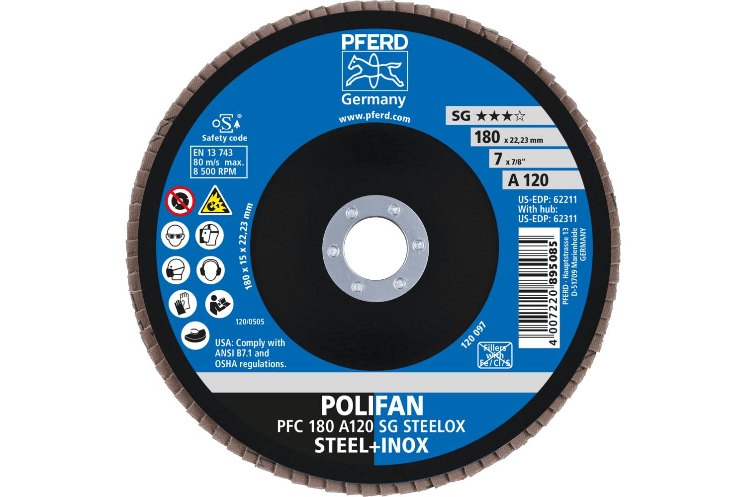 - Abrasive Material:Aluminum OxideBacking Material:ClothCenter Hole Size:7/8 inDisc Diameter:7 inDisc Type:Type 29 ConicalGrit:120Maximum Speed:8600 rpmSeries:Performance Line SG AType:Unthreaded