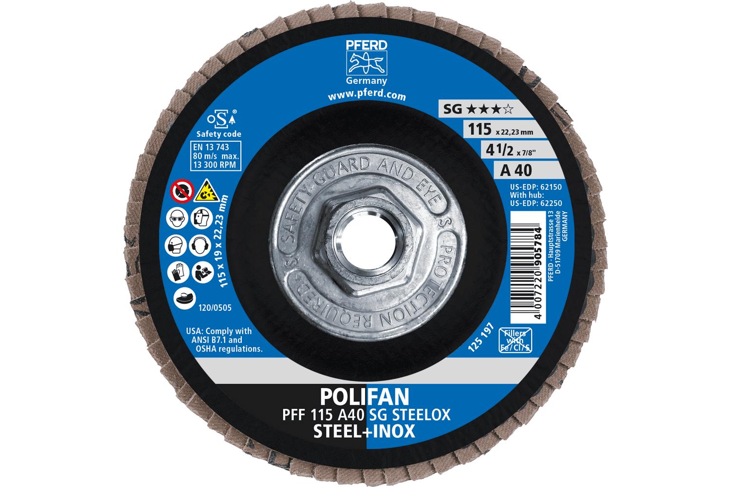- In Stock:YesAbrasive Material:Aluminum OxideBacking Material:ClothCenter Hole Thread Size:5/8-11Disc Diameter:4-1/2 inDisc Type:Type 27 FlatGrit:40Maximum Speed:13300 rpmSeries:Performance Line SG AType:Threaded