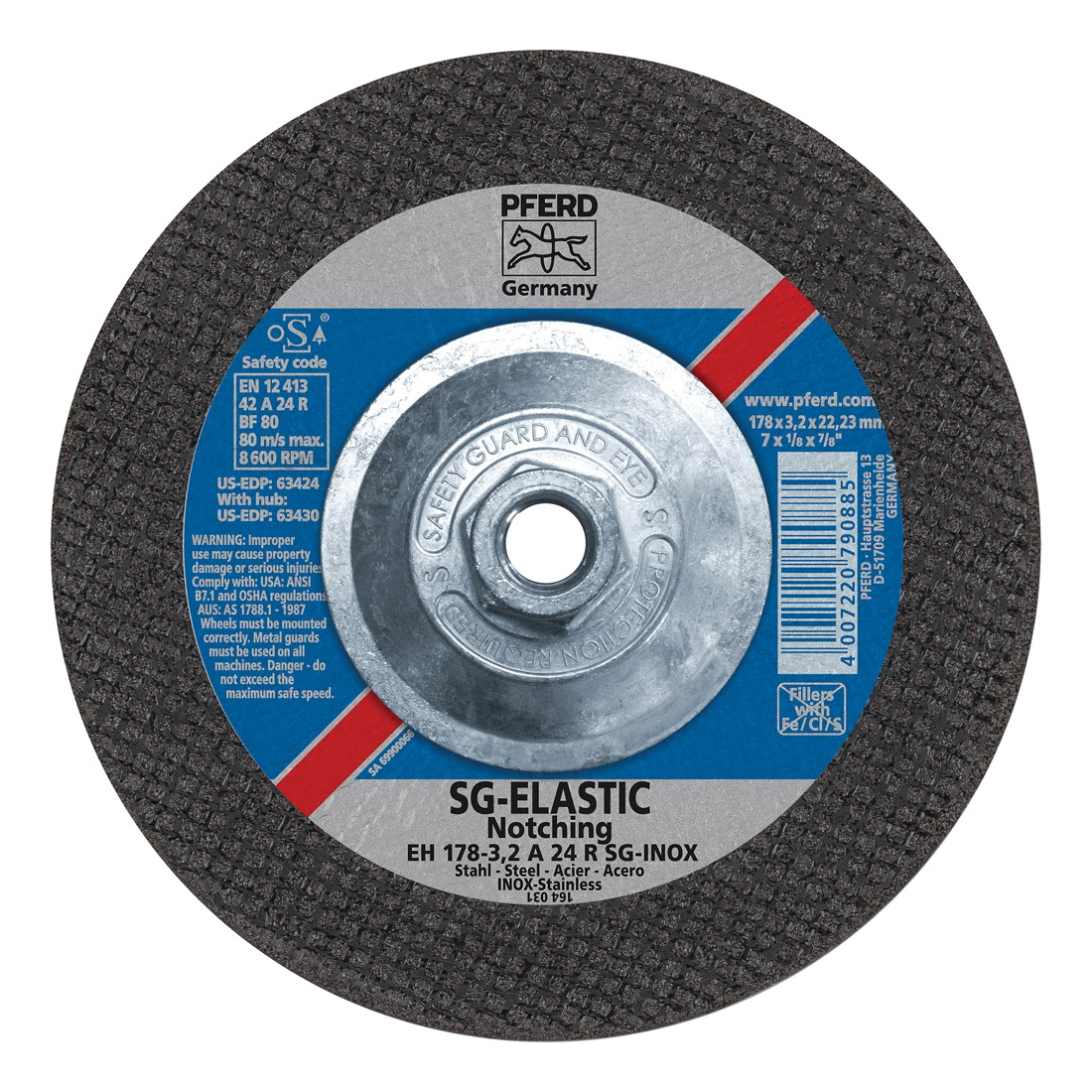 - Abrasive Material:Aluminum OxideApplicable Materials:Steel and Stainless Steel (INOX)Bond Type:ResinCenter Hole Thread Size:5/8-11Grade:CoarseGrit:24Maximum Speed:8600 rpmSeries:Performance Line SGSpecifications Met:ANSI B7.1Wheel Diameter:7 inWheel Hardness:RWheel Thickness:1/8 inWheel Type Number:Type 27