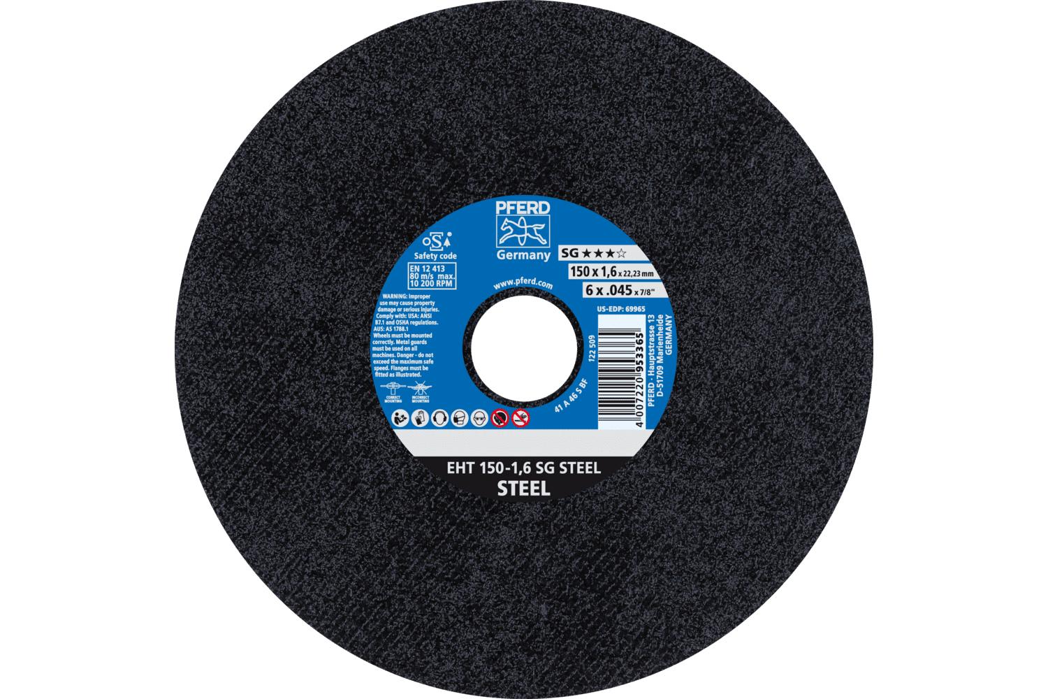 PFERD Cut-Off Wheel, Flat, Series: Performance Line SG-ELASTIC, 6 in Wheel Dia, 0.045 in Wheel Thickness, 7/8 in Center Hole, 46 Grit, Aluminum Oxide Abrasive, 10200 rpm Maximum, Resin Bond, Applicable Materials: Stainless Steel (INOX), Carbon Steel and Ferrous Metal, Wheel Type Number: Type 1, Wheel Hardness: S, For Use With: Angle Grinders