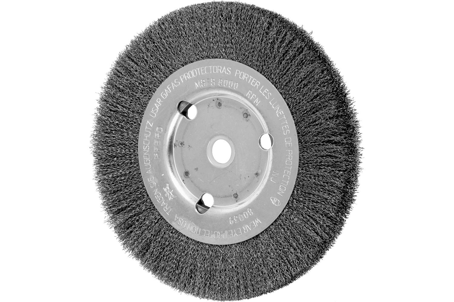 - Arbor Hole Size:1/2 to 5/8 inAttachment Type:Unthreaded ArborBrush Diameter:6 inFace Width:5/8 inFilament/Wire Diameter:0.008 inFilament/Wire Type:CrimpedFill Material:Carbon SteelMaximum Speed:8000 rpmTrim Length:1-1/8 inType:Narrow Face