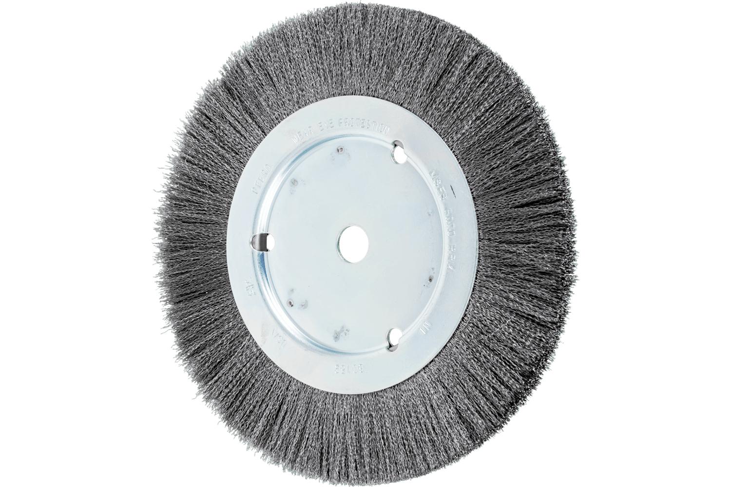 - Arbor Hole Size:5/8 inAttachment Type:Unthreaded ArborBrush Diameter:8 inFace Width:5/8 inFilament/Wire Diameter:0.008 inFilament/Wire Type:CrimpedFill Material:Carbon SteelMaximum Speed:6000 rpmTrim Length:1-1/2 inType:Narrow Face
