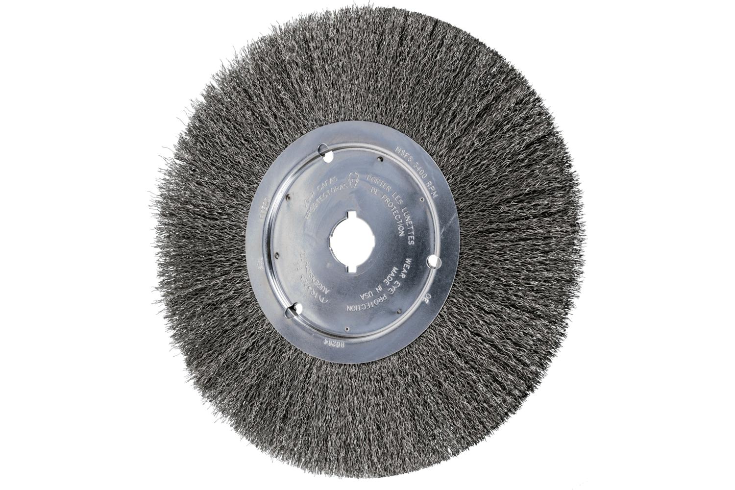 - Arbor Hole Size:1-1/4 inAttachment Type:Unthreaded ArborBrush Diameter:12 inFace Width:1-1/4 inFilament/Wire Diameter:0.014 inFilament/Wire Type:CrimpedFill Material:Carbon SteelMaximum Speed:3400 rpmTrim Length:2-7/8 inType:Narrow Face