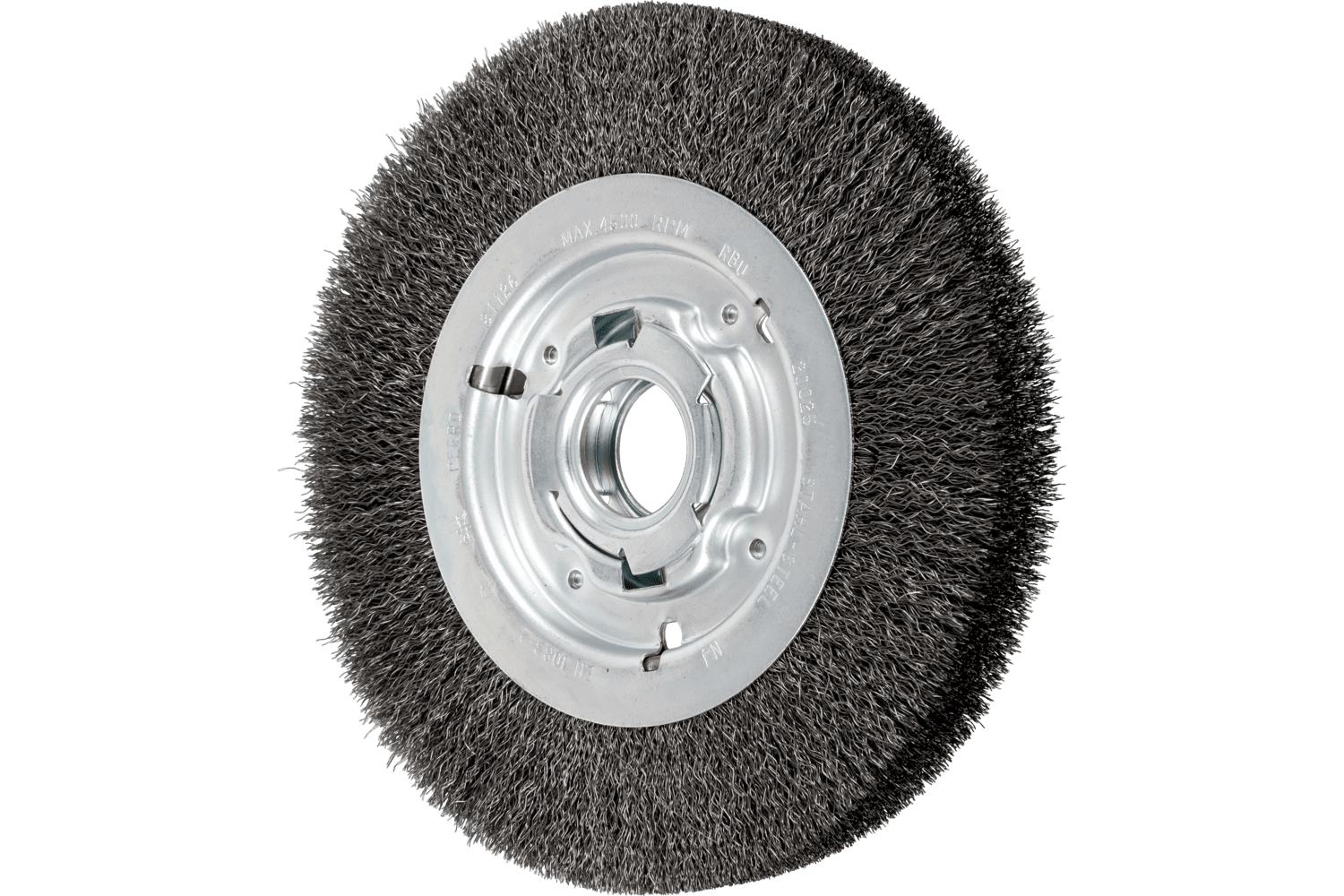 - Arbor Hole Size:2 inAttachment Type:Unthreaded ArborBrush Diameter:8 inFace Width:1-1/16 inFilament/Wire Diameter:0.01 inFilament/Wire Type:CrimpedFill Material:Carbon SteelMaximum Speed:4500 rpmTrim Length:1-1/2 inType:Medium Face