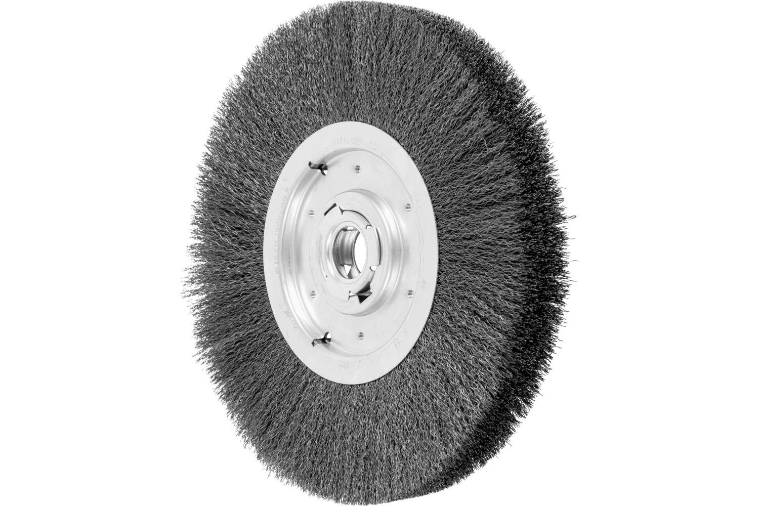 PFERD Wheel Brush, Medium Face, 12 in Brush Dia, 1-3/4 in Face Width, 2 in Arbor Hole Size, Crimped Filament/Wire Type, 0.012 in Filament/Wire Diameter, Carbon Steel Fill, 2-7/8 in Trim Length, 3000 rpm Maximum, Unthreaded Arbor Attachment