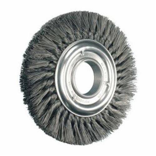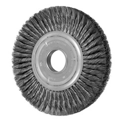 PFERD Wheel Brush, Double Row Heavy Duty Long Flag, 10 in Brush Dia, 1-1/4 in Face Width, 2 in Arbor Hole Size, Standard/Twist Knot Filament/Wire Type, 0.012 in Filament/Wire Diameter, Carbon Steel Fill, 2-1/8 in Trim Length, 4800 rpm Maximum, Unthreaded Arbor Attachment