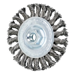 - Arbor Hole Size:1/2-13Attachment Type:Threaded ArborBrush Diameter:4 inFace Width:3/8 inFilament/Wire Diameter:0.02 inFilament/Wire Type:Full Cable Twist KnotFill Material:Carbon SteelMaximum Speed:20000 rpmTrim Length:3/4 inType:Narrow Face