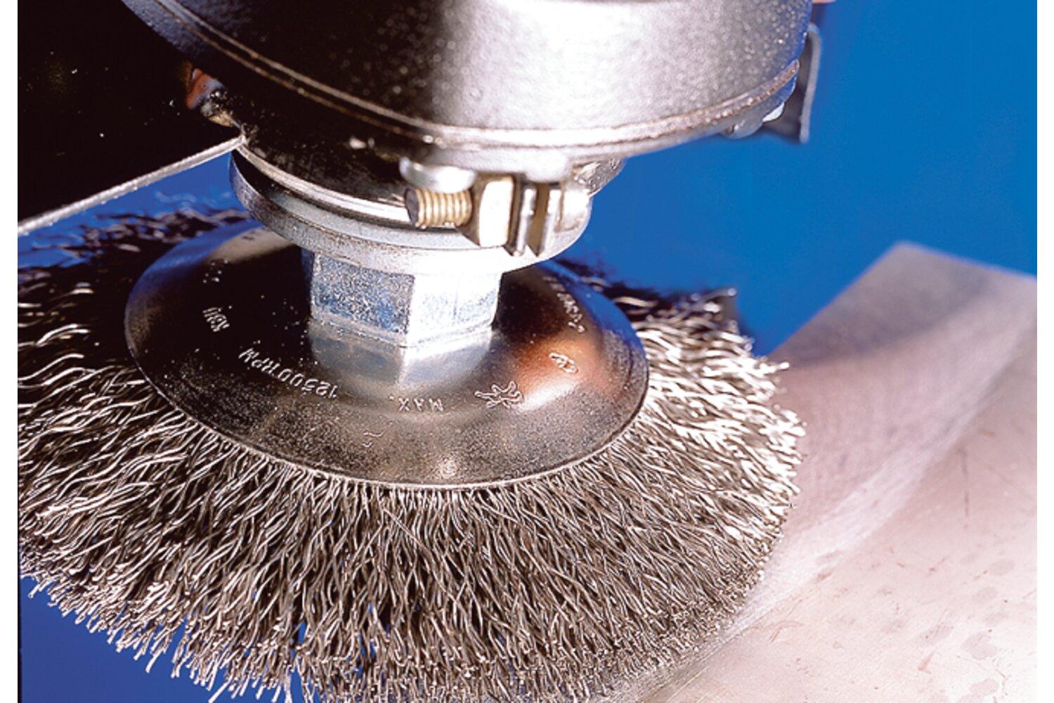 - Arbor Hole Size:5/8-11Brush Diameter:4 inFilament/Wire Diameter:0.014 inFilament/Wire Type:CrimpedFill Material:Carbon SteelMaximum Speed:15000 rpmTrim Length:3/4 inType:Bevel Minigrinder