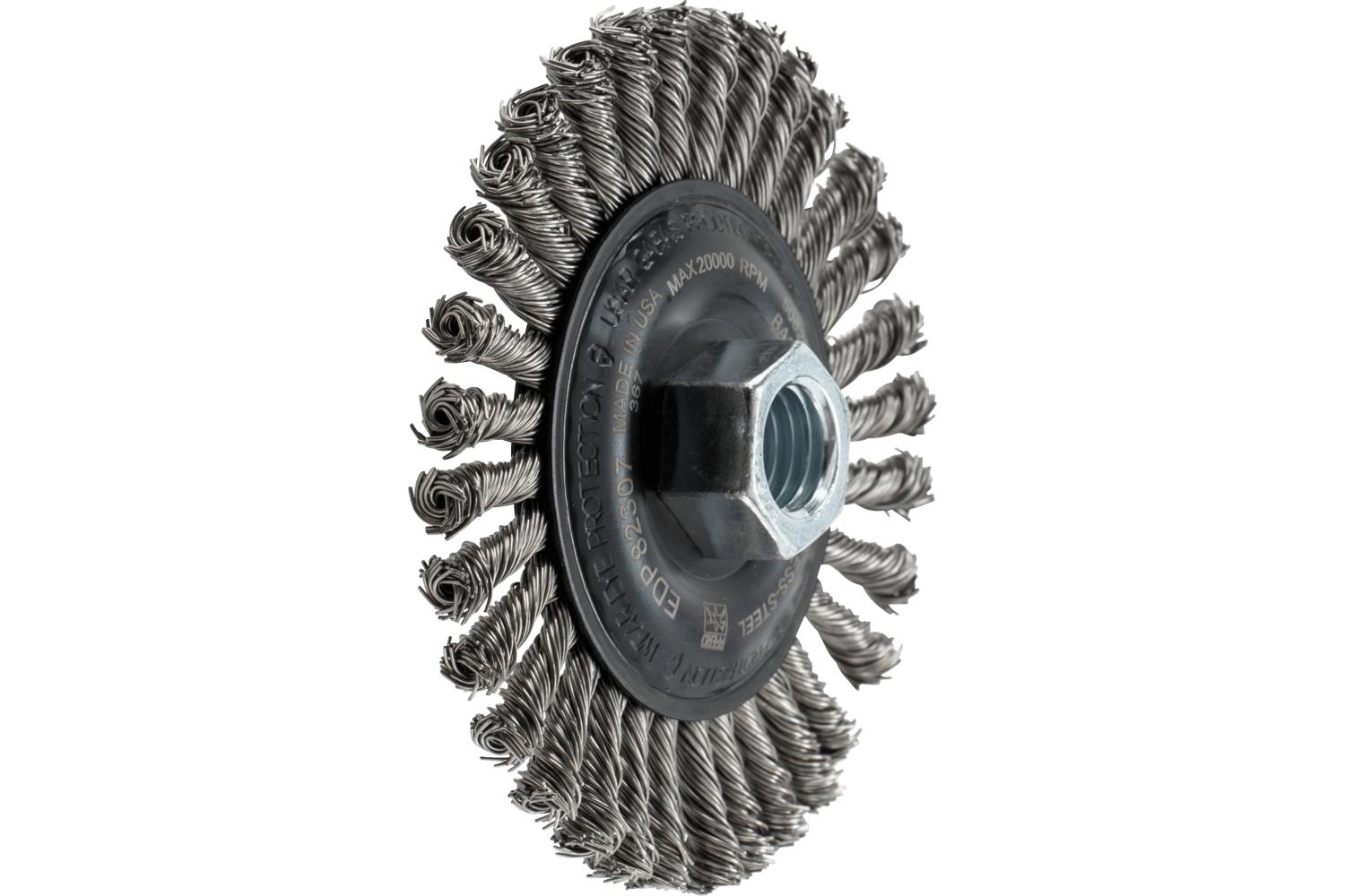 - Stringer bead knot wheel brushes are tightly twisted for low flex, high impact brushing action