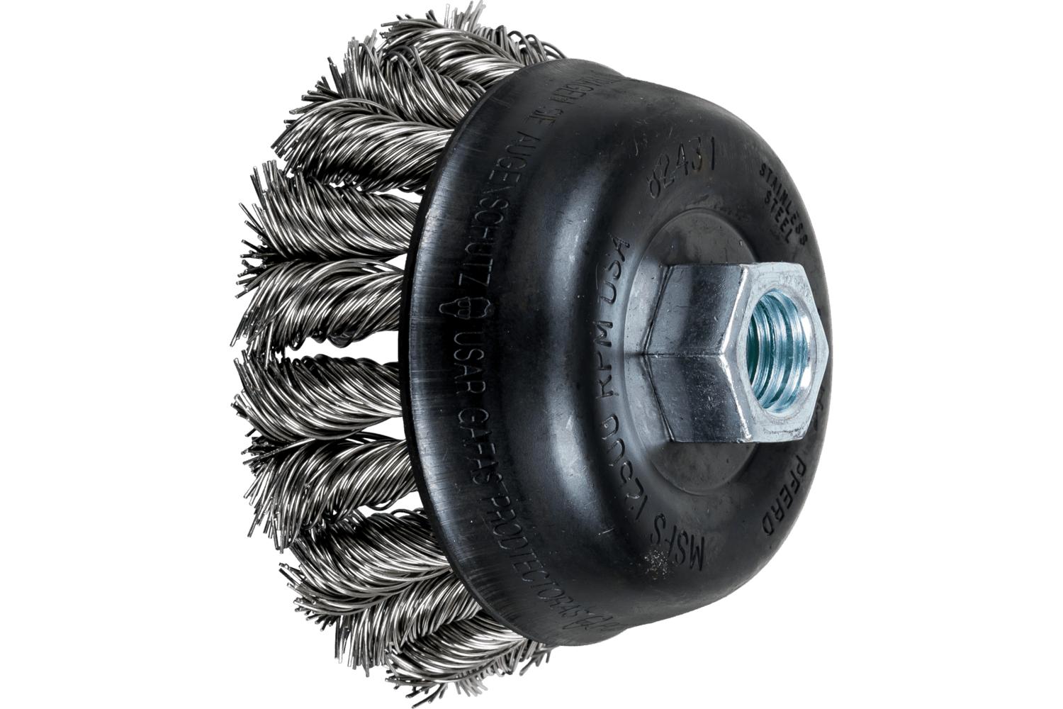 - Premium knot cup brush featuring maximum service life, improved balance and fastest removal rates