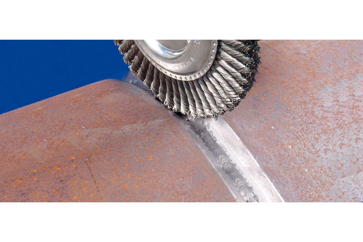 - Stringer bead knot wheel brushes are tightly twisted for low flex, high impact brushing action