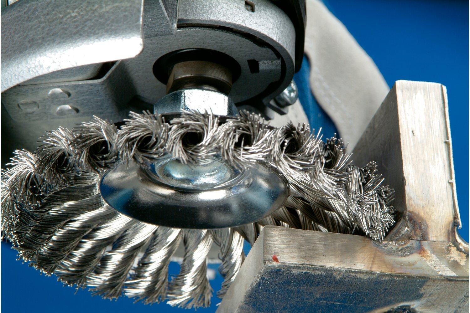 - Knot wire provides a more aggressive abrasive action than crimped wire