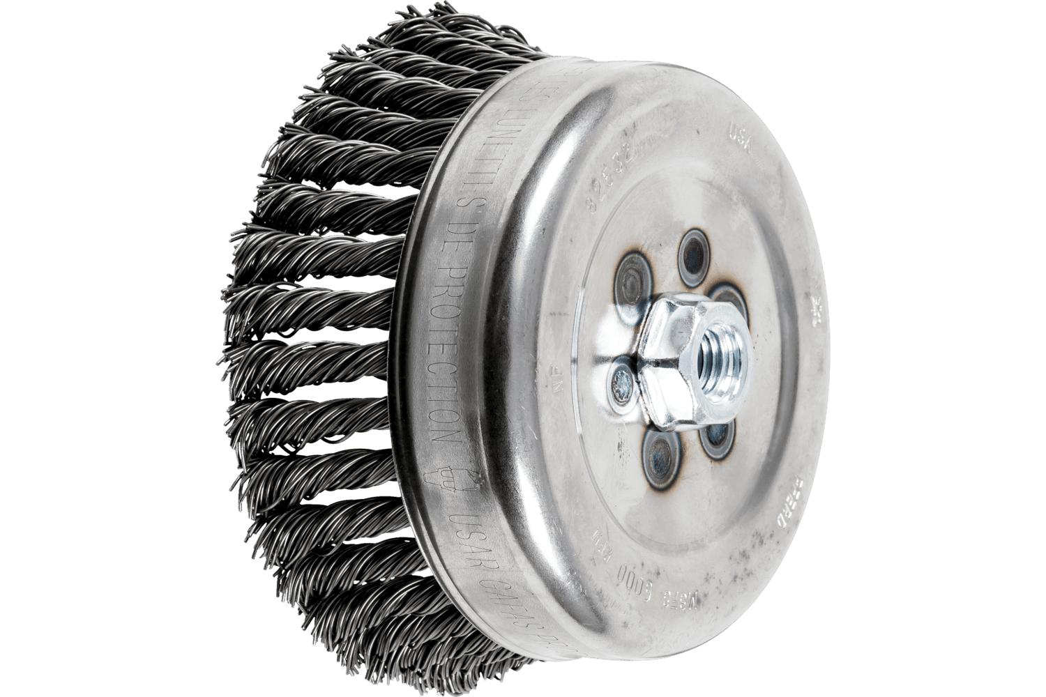 PFERD Cup Brush, External Nut Single Row, 6 in Brush Dia, 5/8-11 Arbor Hole Size, Standard/Twist Knot Filament/Wire Type, 0.035 in Filament/Wire Diameter, Carbon Steel Fill, 1-1/2 in Trim Length, 6000 rpm Maximum