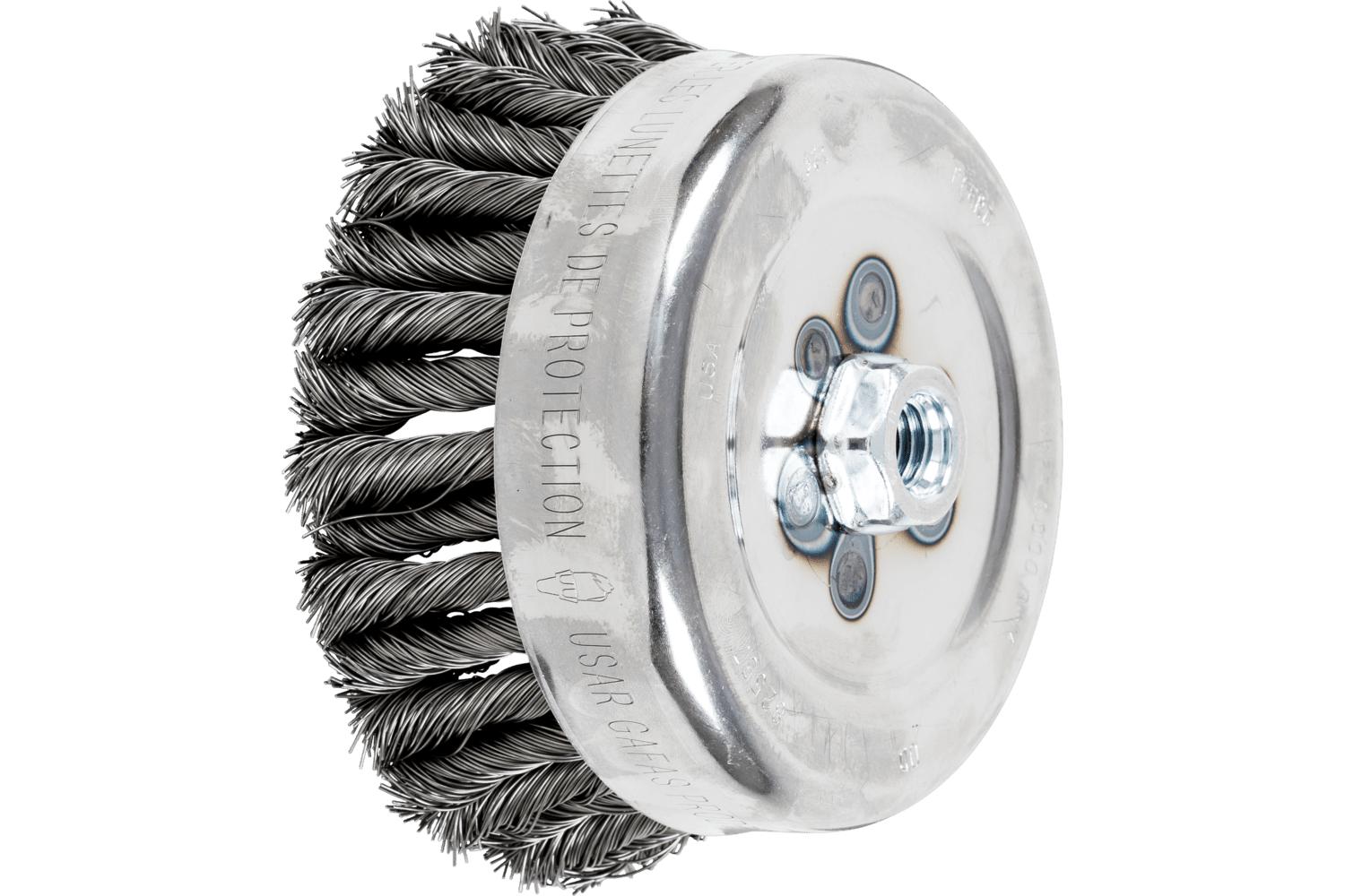 PFERD COMBITWIST® Cup Brush, Double Row External Nut, 6 in Brush Dia, 5/8-11 Arbor Hole Size, Standard/Twist Knot Filament/Wire Type, 0.023 in Filament/Wire Diameter, Carbon Steel Fill, 1-1/2 in Trim Length, 6000 rpm Maximum