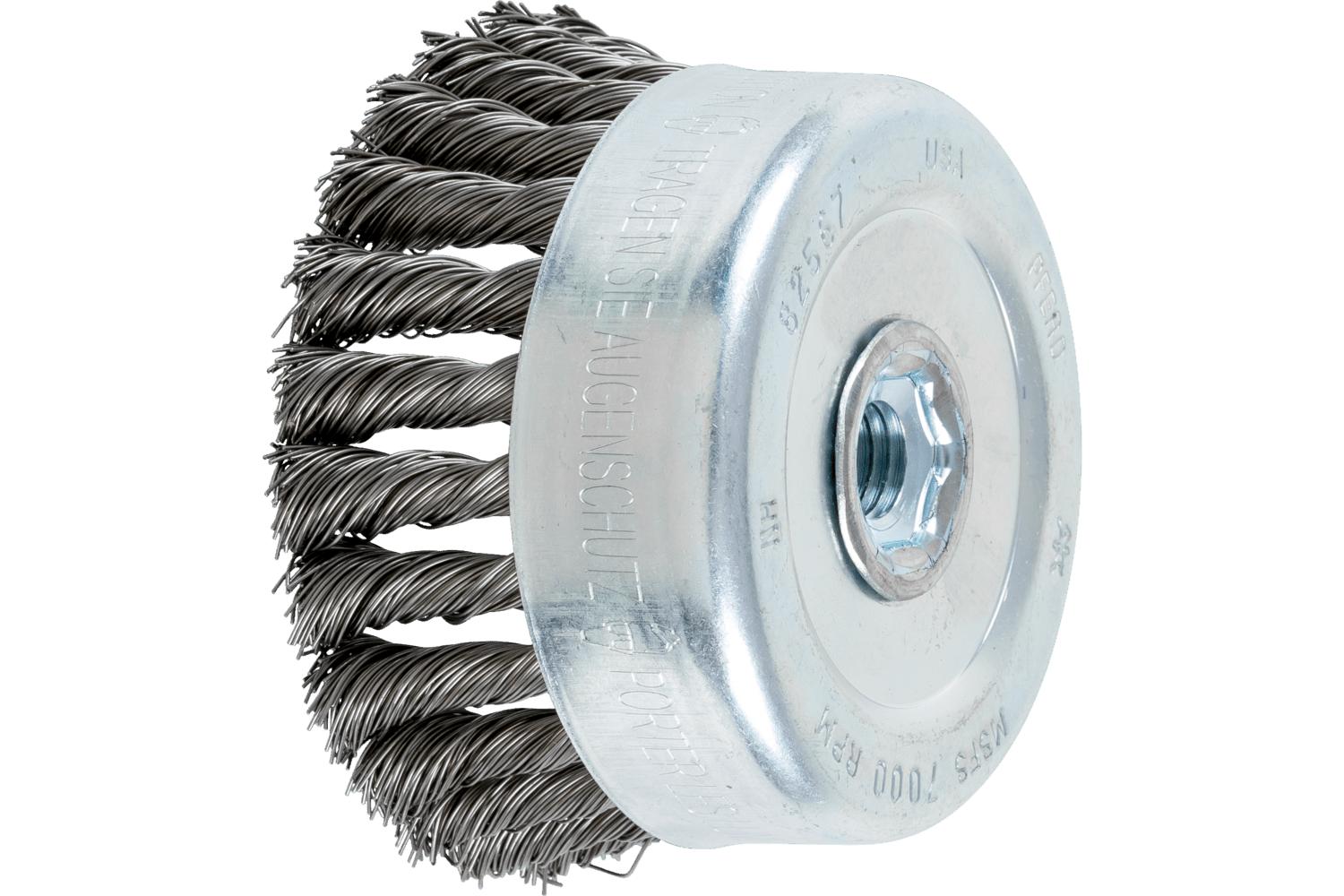 - Arbor Hole Size:5/8-11Brush Diameter:4 inFilament/Wire Diameter:0.02 inFilament/Wire Type:Full Cable Twist KnotFill Material:Carbon SteelMaximum Speed:7000 rpmTrim Length:1-3/8 inType:Internal Nut Single Row