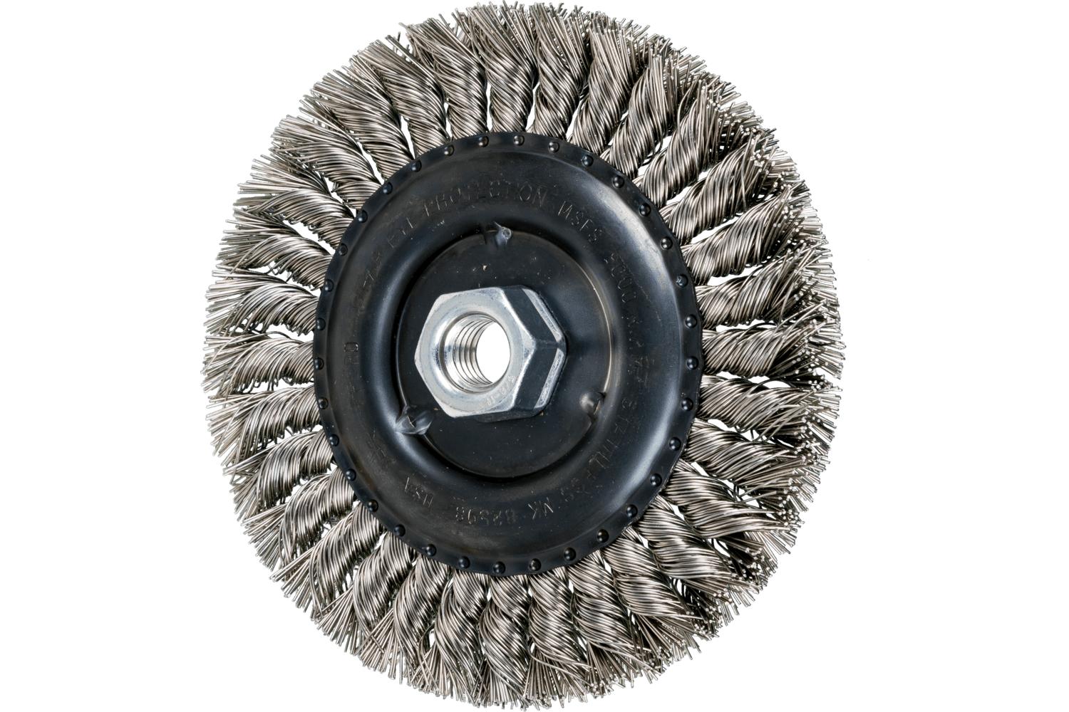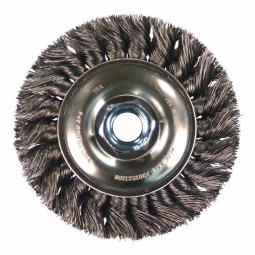 - Arbor Hole Size:5/8-11Attachment Type:Threaded ArborBrush Diameter:6 inFace Width:5/8 inFilament/Wire Diameter:0.023 inFilament/Wire Type:Standard/Twist KnotFill Material:Stainless SteelMaximum Speed:9000 rpmTrim Length:1-1/8 in
