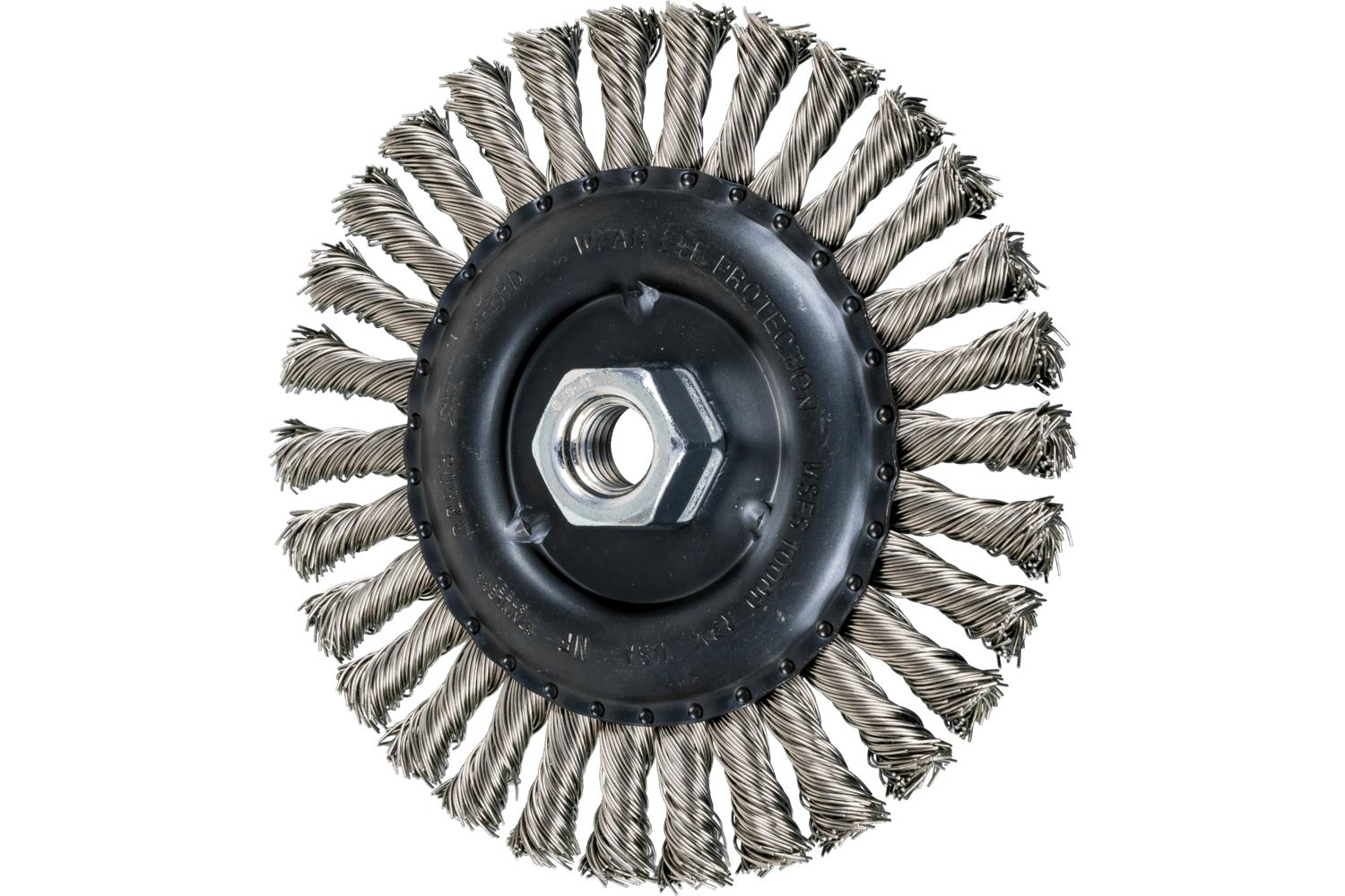 - Arbor Hole Size:5/8-11Attachment Type:Threaded ArborBrush Diameter:6 inFace Width:1/2 inFilament/Wire Diameter:0.023 inFilament/Wire Type:Full Cable Twist KnotFill Material:Stainless SteelMaximum Speed:10000 rpmTrim Length:1-1/4 inType:Narrow Face