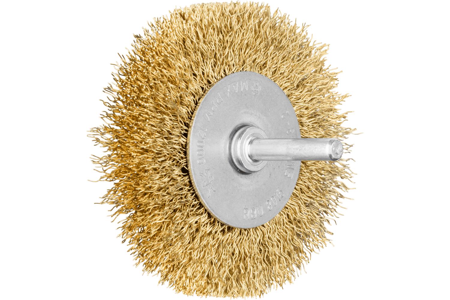 - Attachment Type:StemBrush Diameter:3 inFace Width:5/8 inFilament/Wire Diameter:0.012 inFilament/Wire Type:CrimpedFill Material:BrassMaximum Speed:20000 rpmShank Diameter:1/4 inTrim Length:3/4 in