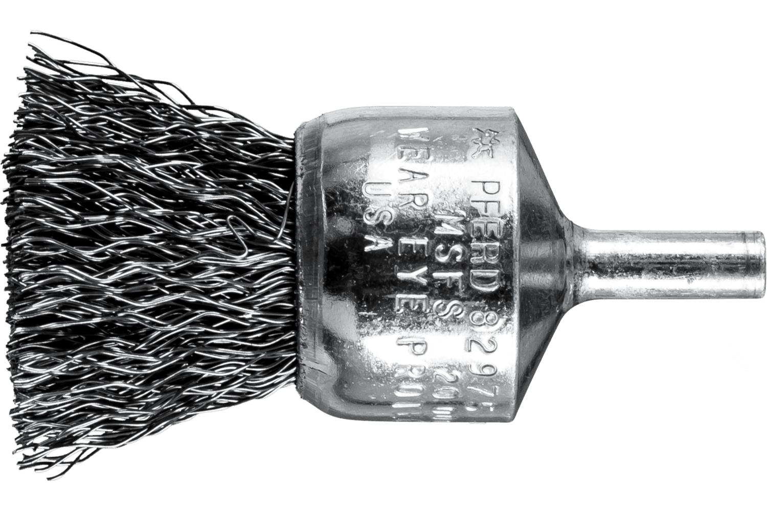 - Brush Diameter:1 inFilament/Wire Diameter:0.014 inFilament/Wire Type:CrimpedFill Material:Carbon SteelMaximum Speed:20000 rpmShank Diameter:1/4 inTrim Length:1 inType:Stem Mount