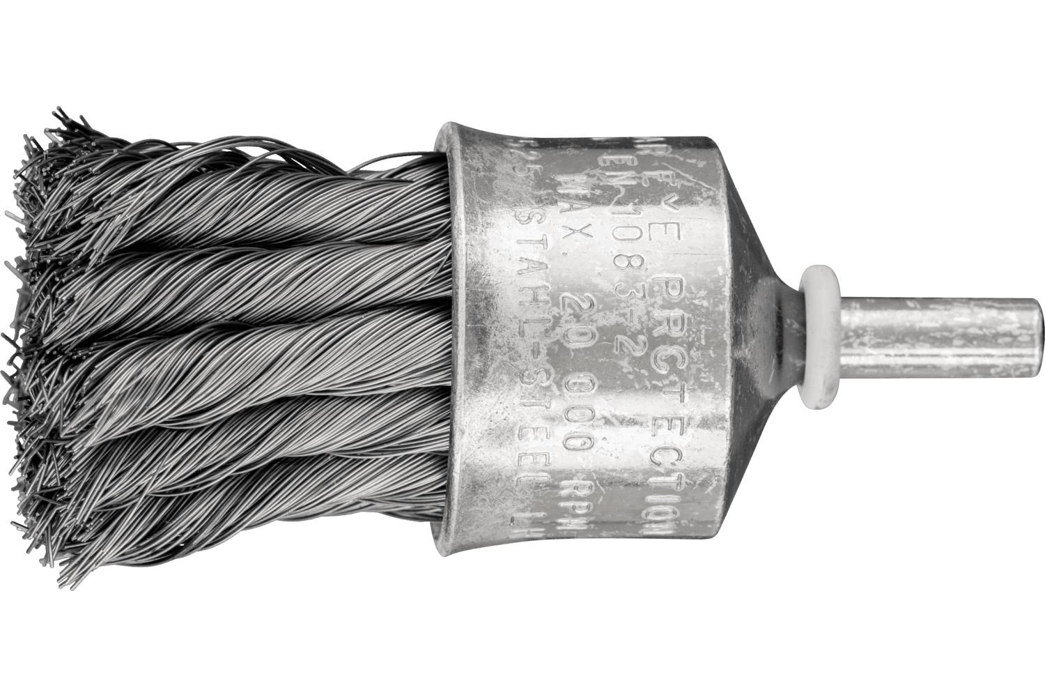 PFERD 83078 Flared Cup Stem Mount End Brush, 1 in, Knot, 0.01 in, Carbon Steel Fill, 1 in L Trim