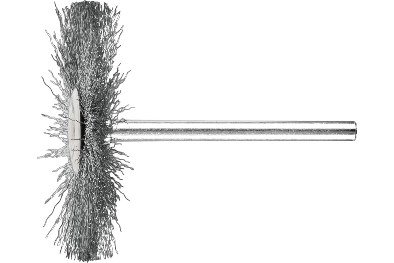 - Attachment Type:StemBrush Diameter:1-1/2 inFace Width:1/16 inFilament/Wire Diameter:0.005 inFilament/Wire Type:CrimpedFill Material:Carbon SteelMaximum Speed:18000 rpmShank Diameter:1/8 inTrim Length:1/2 inType:Miniature