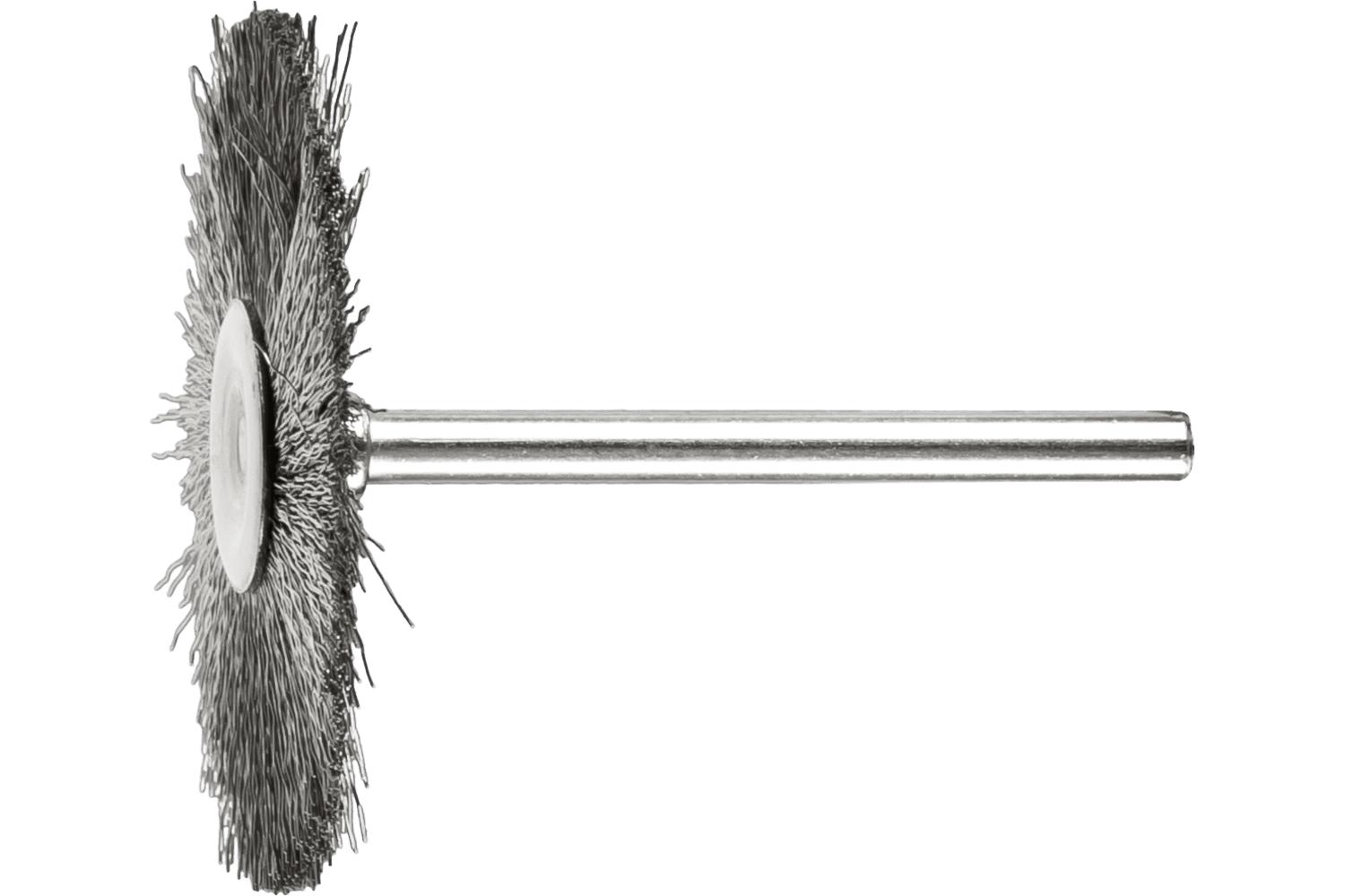 - Attachment Type:StemBrush Diameter:1-1/2 inFace Width:1/16 inFilament/Wire Diameter:0.005 inFilament/Wire Type:CrimpedFill Material:Stainless SteelMaximum Speed:25000 rpmShank Diameter:1/8 inTrim Length:1/2 inType:Miniature