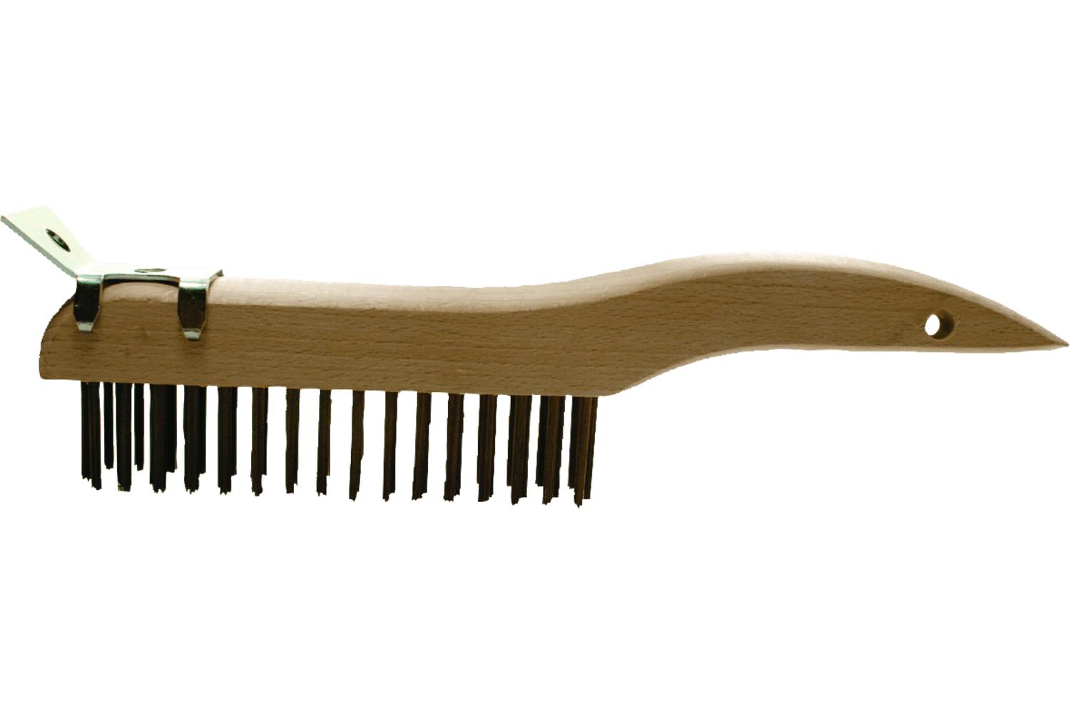 PFERD Scratch Brush, 5 in Brush, 10-1/4 in L x 1-1/8 in W Block, 1-3/16 in Trim Length, Carbon Steel Trim, 4 x 16 Rows, Shoe Handle, Hardwood Handle