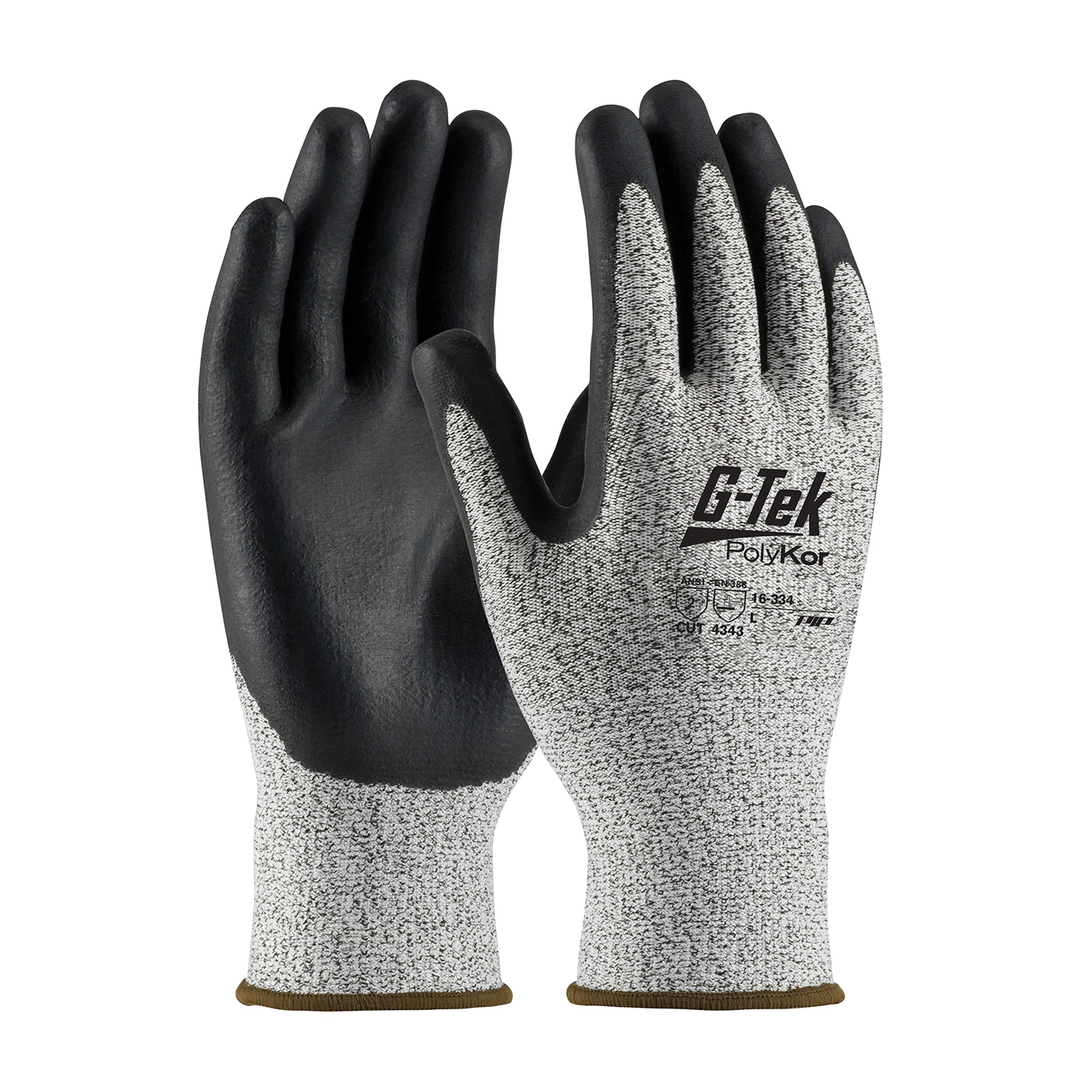 G-Tek 16-334/M 16-334 Unisex Cut-Resistant Gloves M Nitrile with Foam Grip Coating PolyKor Fiber Knit Wrist Cuff Resists: Abrasion Chemical Cut Puncture Tear Ultraviolet Light and Water ANSI Cut-Resistance Level: A2