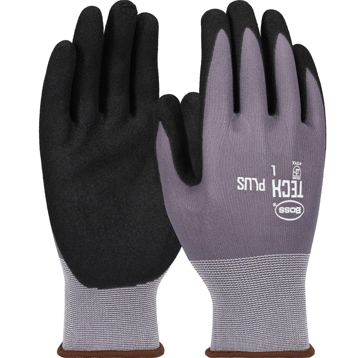 Boss 1UH78302X 1UH7830 Medium Weight General Purpose Work Gloves, Continuous Thumb Style, 2XL, Polyurethane/Super Thin Foam Nitrile Palm, 13 ga Cotton/Nylon/Spandex, Black/Gray, Knit Wrist Cuff, Dipped Coating, Resists: Abrasion, Cut, Puncture and Tear