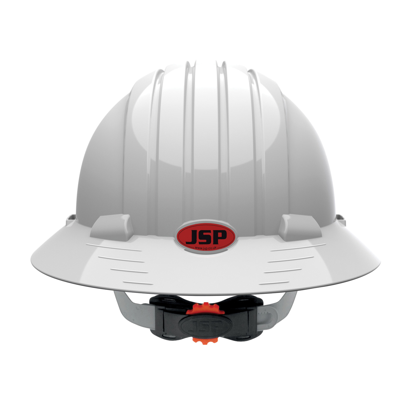 - High density polyethylene (HDPE) shell with a full brim providing additional protection against sun, glare, rain and falling debris