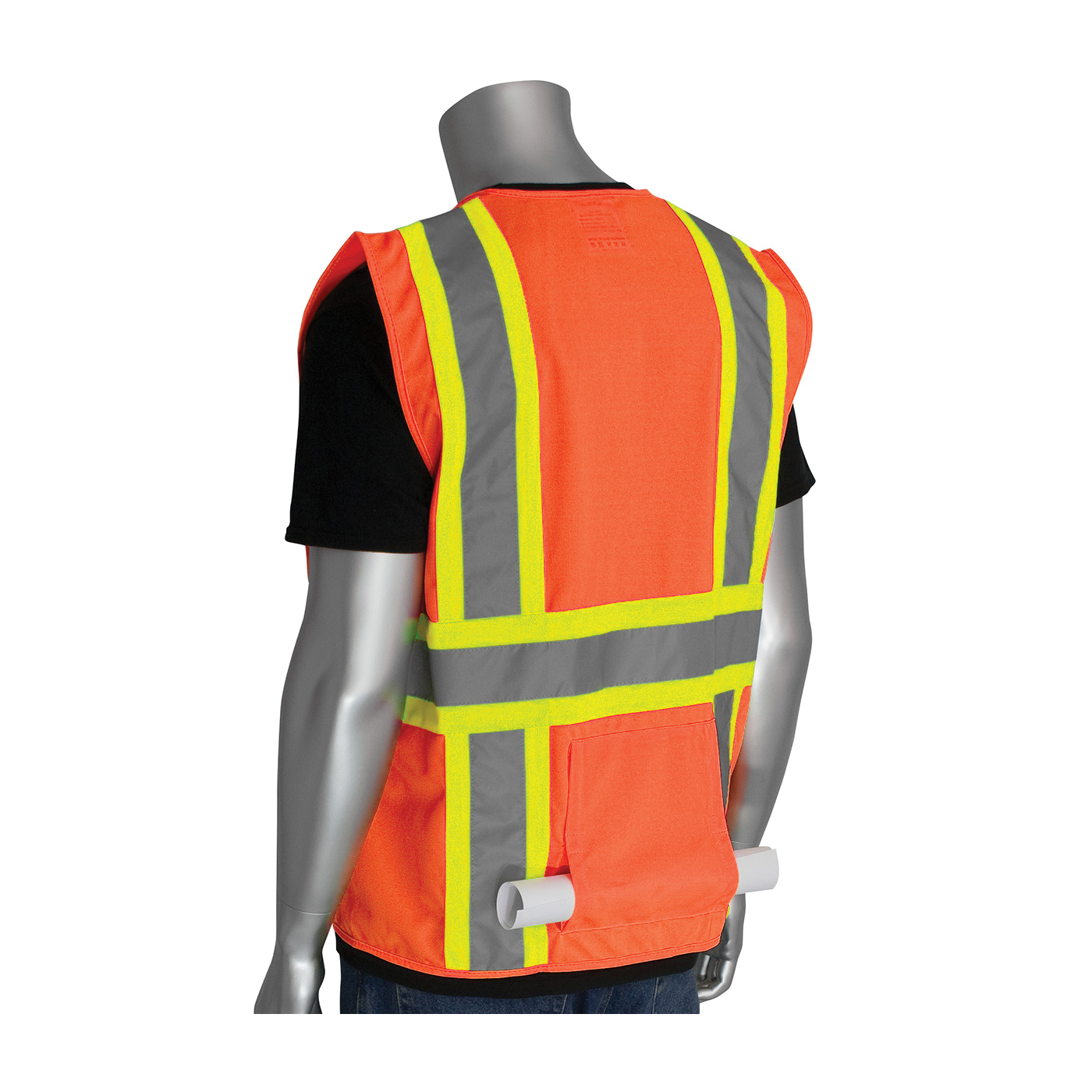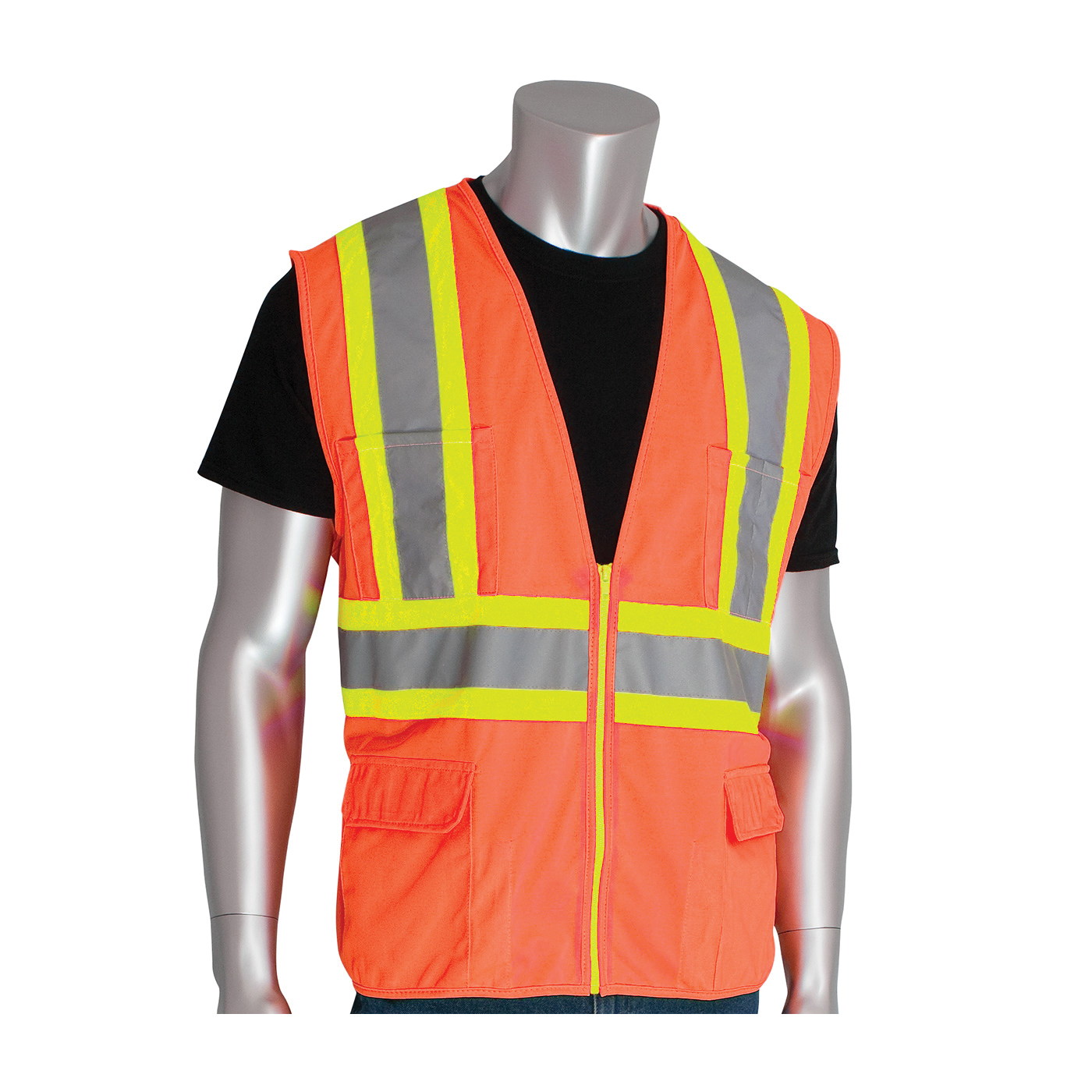 PIP 302-MAPOR-M 2-Tone Premium Surveyor Safety Vest M Hi-Viz Orange Polyester Zipper Closure 11 Pockets ANSI Class: Class 2 Specifications Met: ANSI 107 Type R