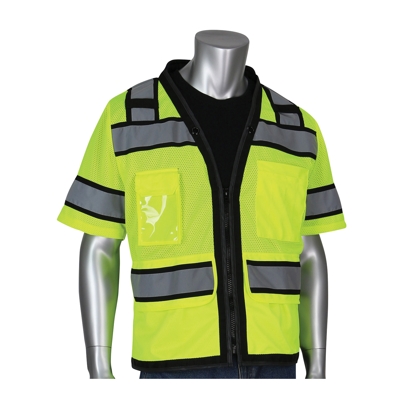 - ANSI Class:Class 3Chest Size:47 inClosure Type:ZipperColor:Hi-Viz Lime YellowLength:28 inMaterial:Polyester MeshNumber of Pockets:11Series:303-0800DSize:MSpecifications Met:ANSI 107 Class 3 Type RStripe Color:Black/Silver