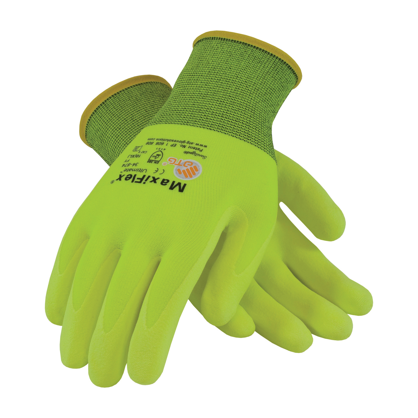 ATG 34-874FY/XL 34-874FY General Purpose Gloves Seamless Style XL Microfoam Nitrile Palm Hi-Viz Yellow Resists: Abrasion Cut Puncture and Tear Nylon/Lycra Lining